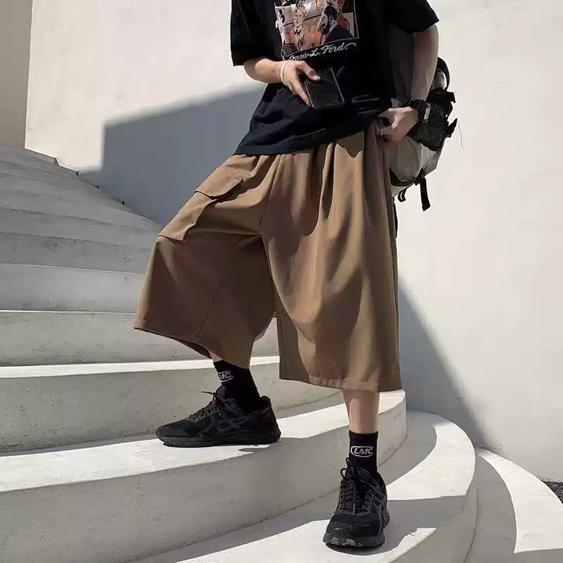 | nameOriginal | Trendy Brown Big Pocket Workwear Japanese Style Cropped Pants |