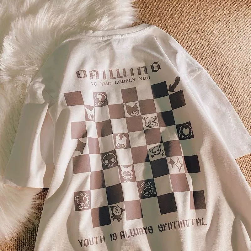 Trendy checkerboard print couple tops ins short sleeve t-shirt