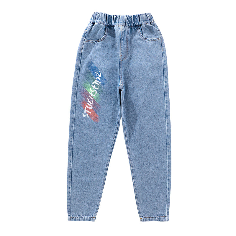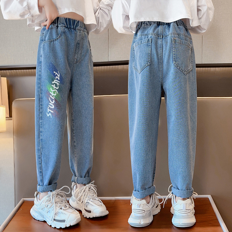 | nameOriginal | Trendy children's clothing Girls' Printed jeans spring Korean style medium and big children loose Denim trousers female student casual pants |