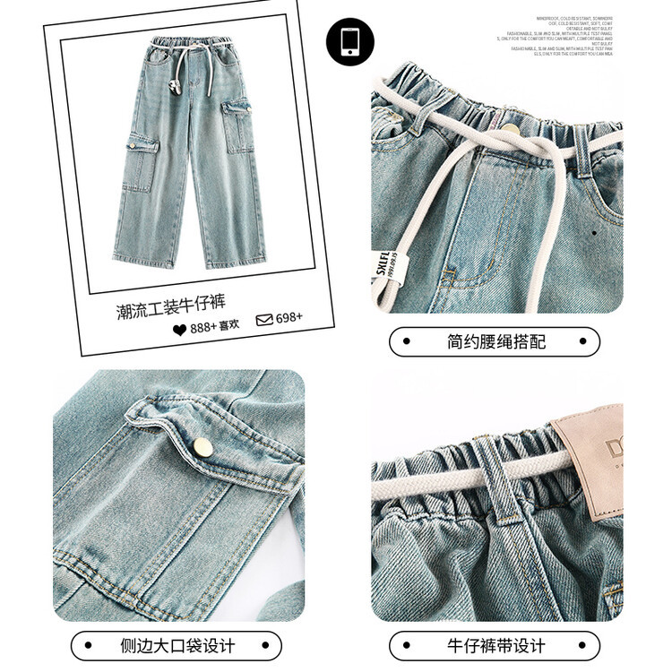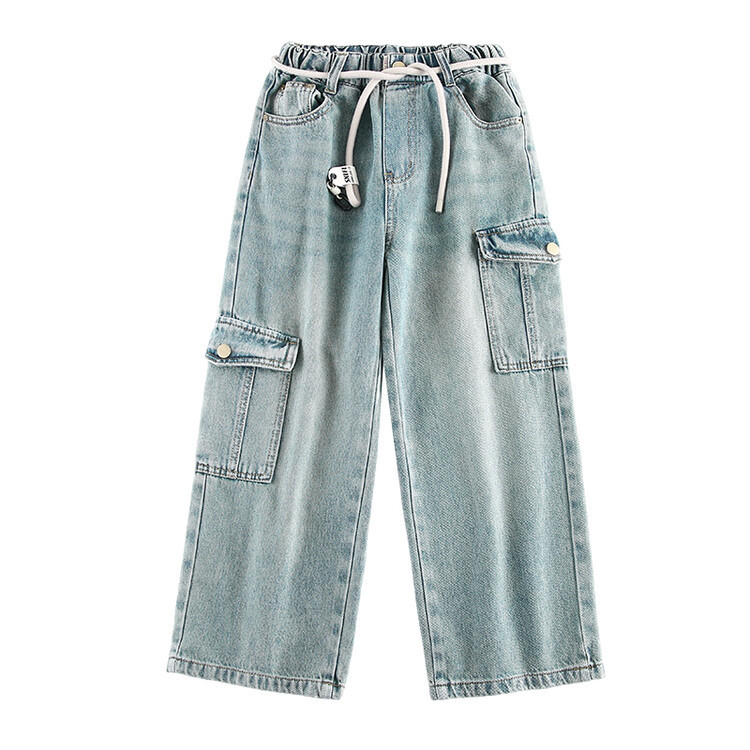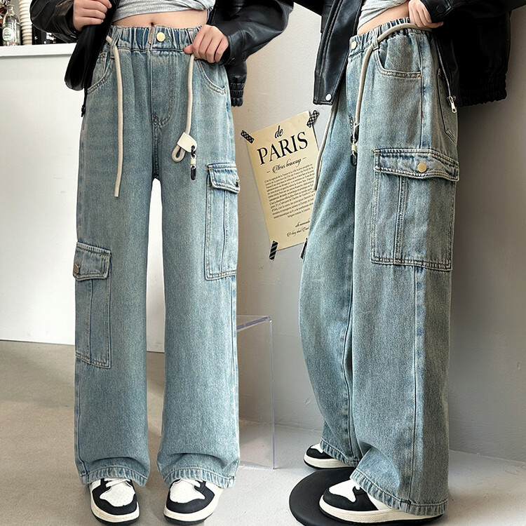 | nameOriginal | Trendy children's pants foreign trade medium and large children's trousers 2024 spring clothes girls' tooling Denim wide-leg pants cross-border delivery |