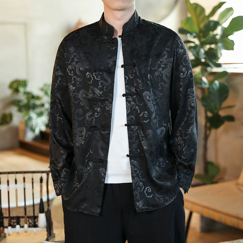 Trendy Chinese style silk loose large size Tang suit with buckle