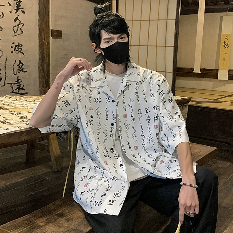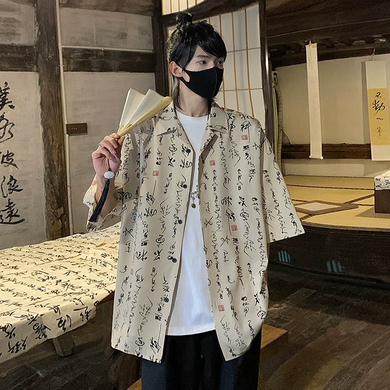 | nameOriginal | Trendy Chinese style text short-sleeved outer shirt for fat people |