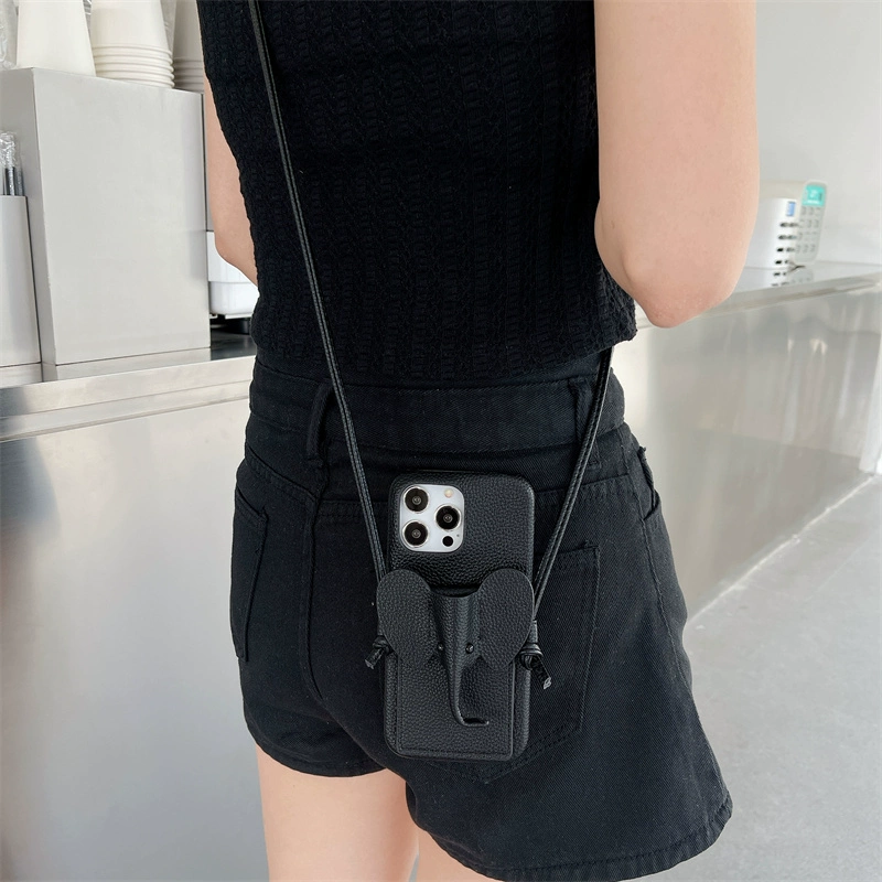 | nameOriginal | Trendy coffee suitable for Apple 13 mobile phone case elephant card holder iPhone15ProMax crossbody coin purse 14promax strap lanyard 15plus high-end 12 leather card 11 fashionable women's model |