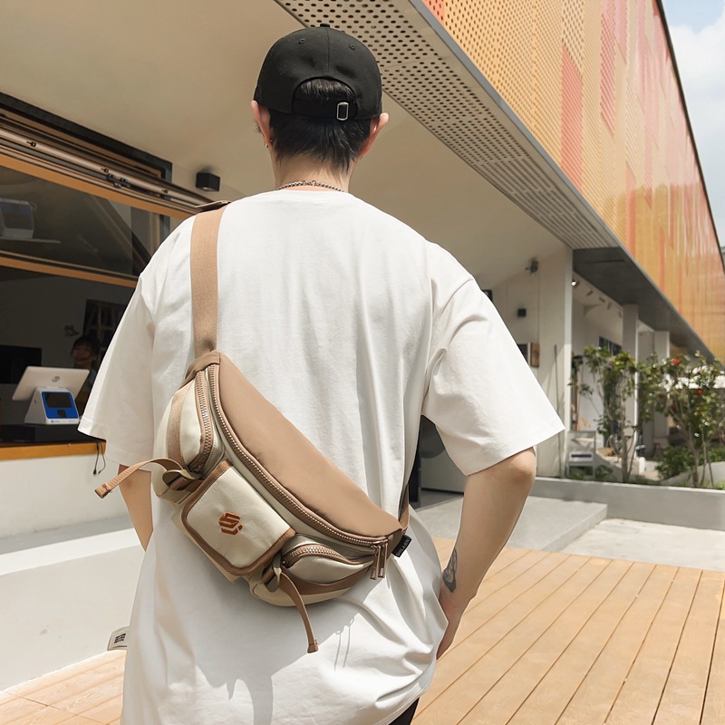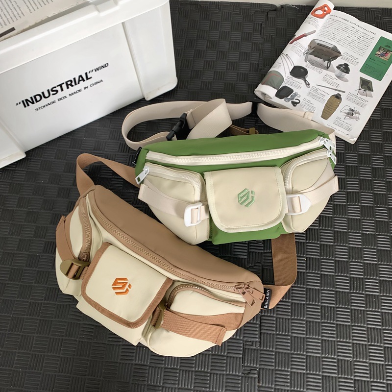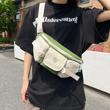 Trendy cool chest bag men’s and women’s street shooting large capacity satchel 2024 summer new contrast casual middle school student bag wholesale