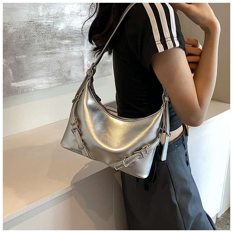 Trendy Cool Motorbike Bag Women’s 2024 Foreign Trade New Niche High-end Texture Underarm Bag Simple Commuting Shoulder Crossbody Bag