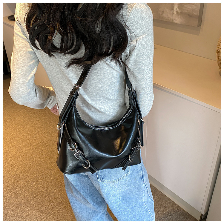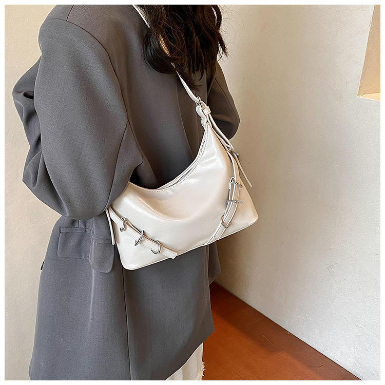Trendy Cool Motorbike Bag Women’s 2024 Foreign Trade New Niche High-end Texture Underarm Bag Simple Commuting Shoulder Crossbody Bag