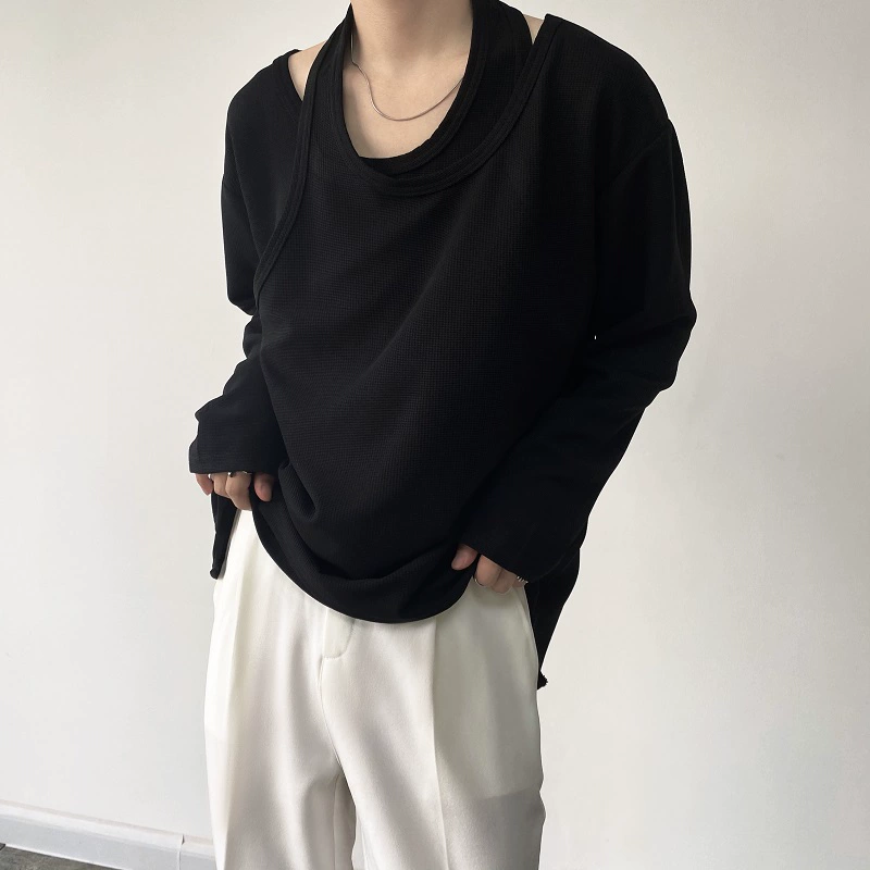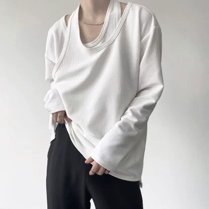 Trendy double-layer collar long-sleeved Korean style loose fake two-piece