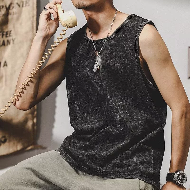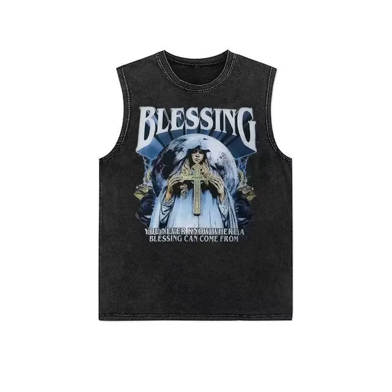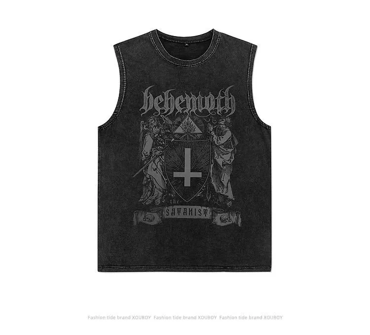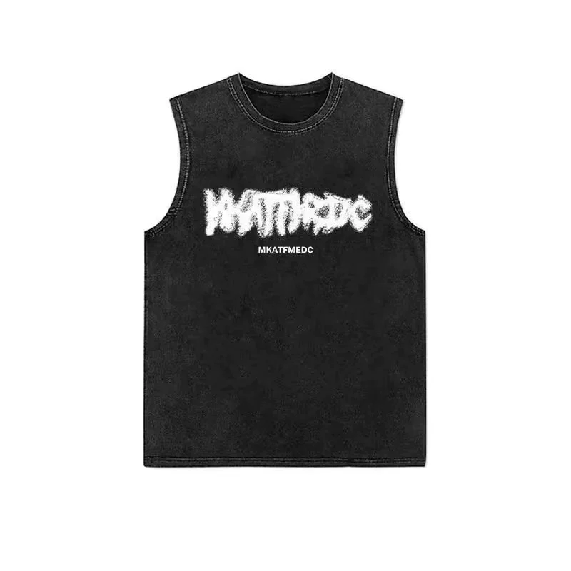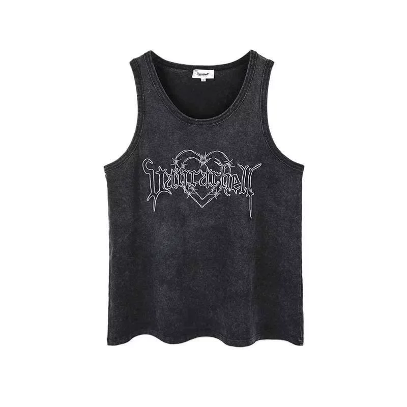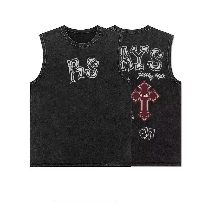 Trendy European and American high street distressed ins loose sleeveless T-shirt