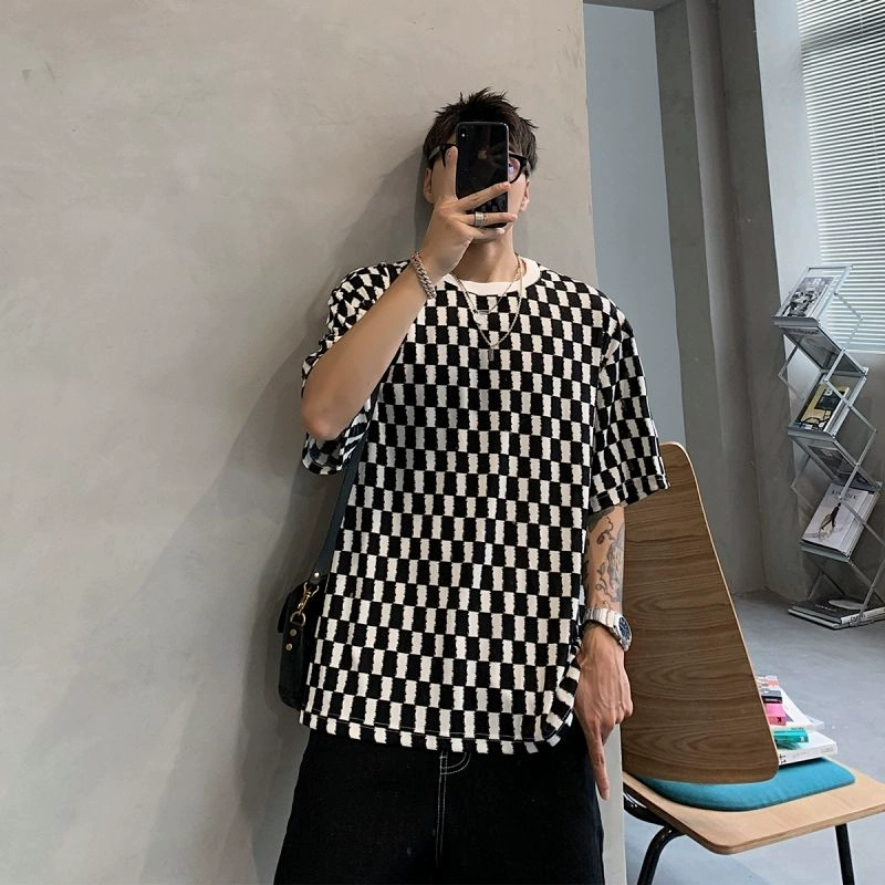 | nameOriginal | Trendy extra large size checkerboard men's ins short-sleeved t-shirt |