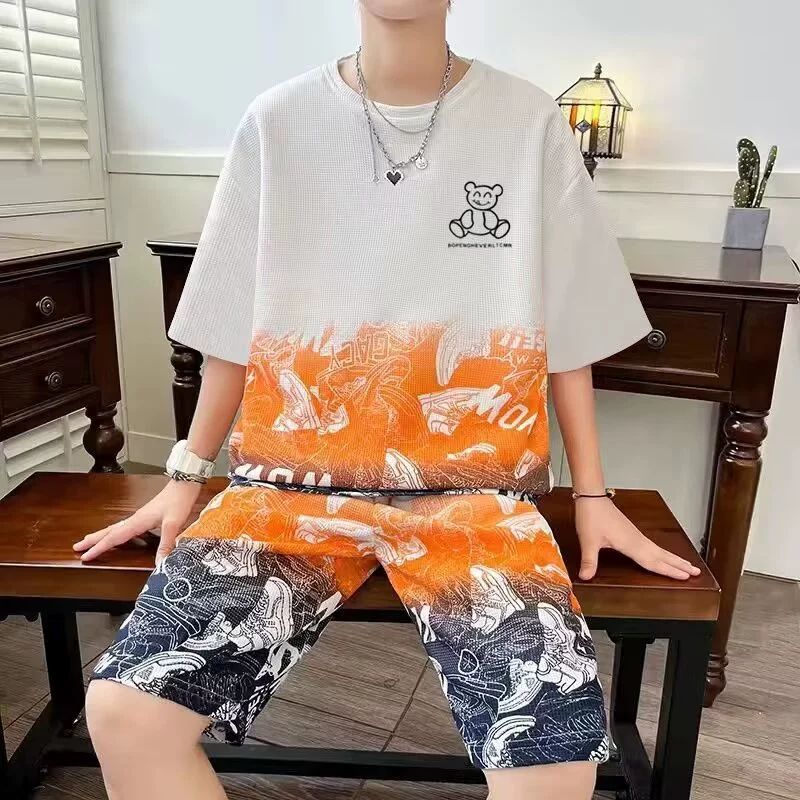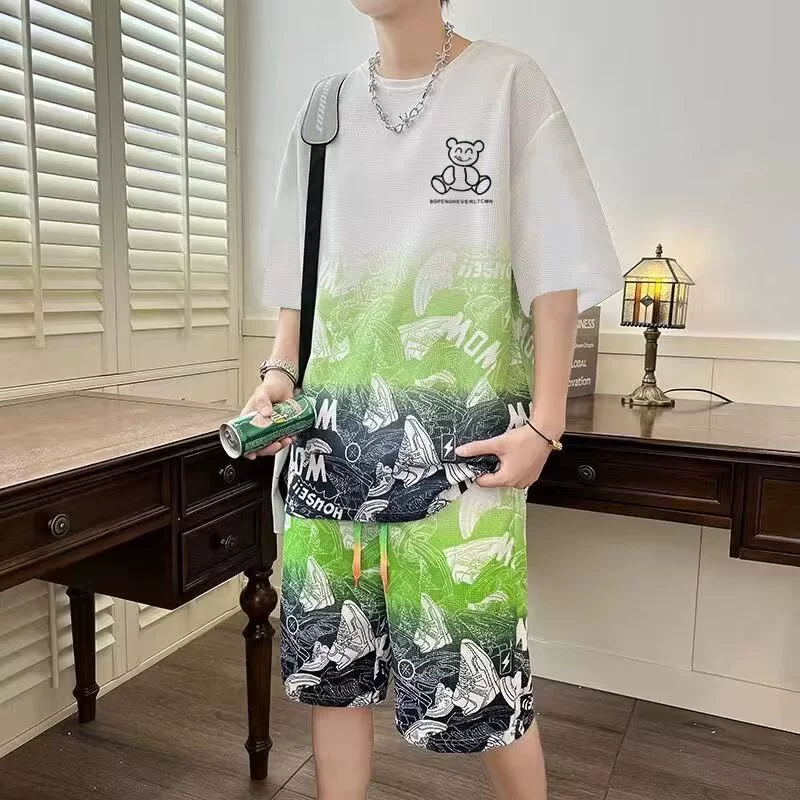 Trendy brand gradient color bear men’s summer short-sleeved T-shirt