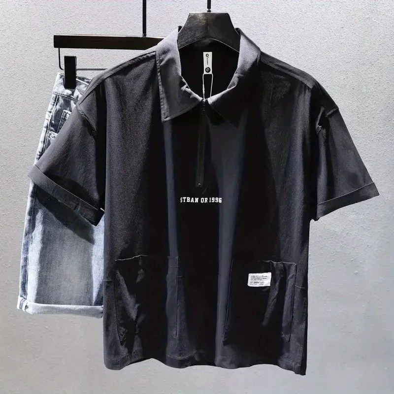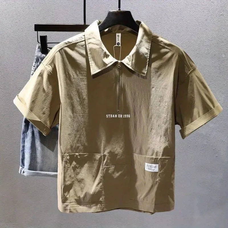Trendy half-zip Japanese casual lapel short-sleeved shirt
