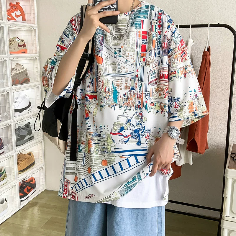 | nameOriginal | Trendy hip-hop all-print ins couple clothes short-sleeved t-shirt |