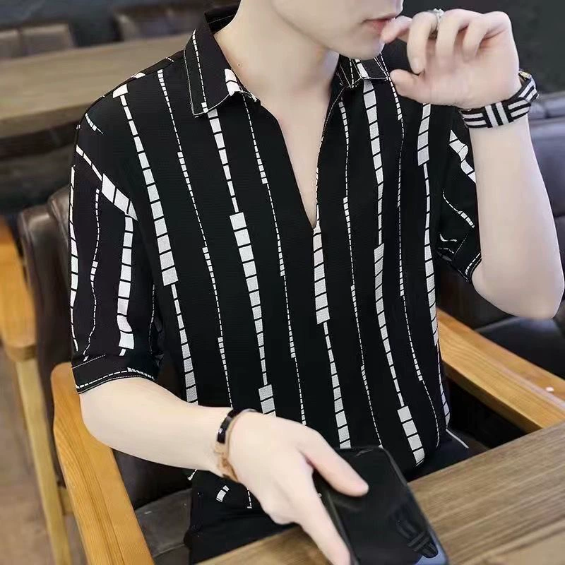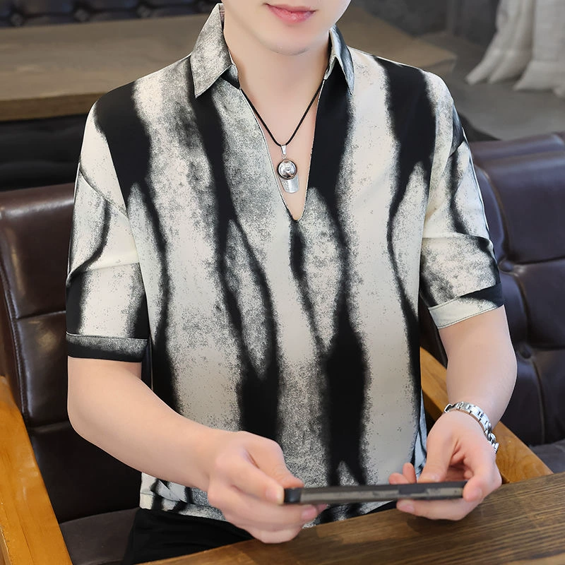 Trendy ice silk polo shirt handsome summer v-neck short sleeves