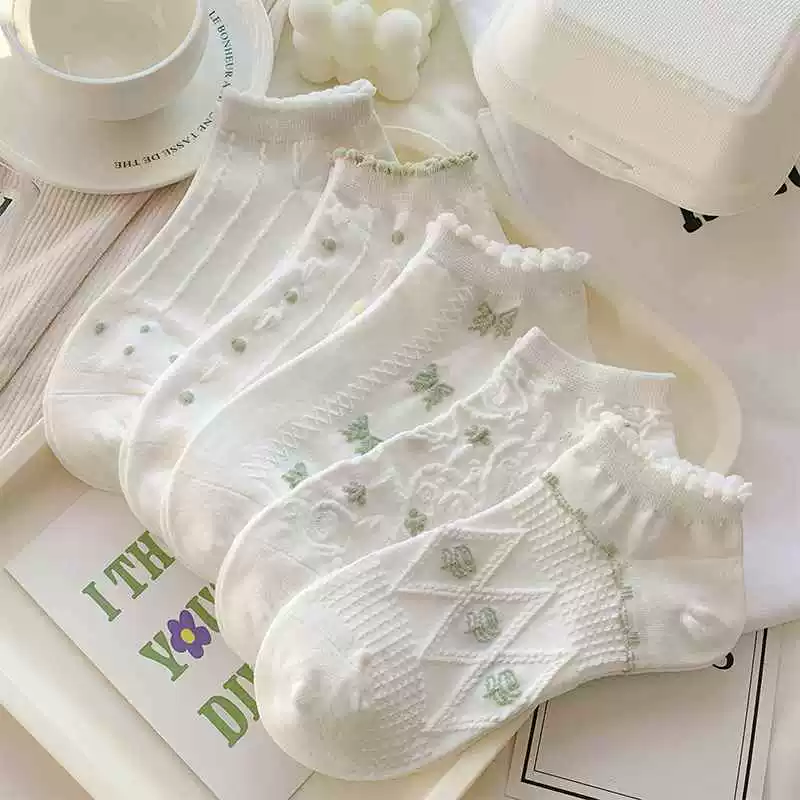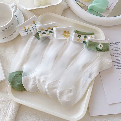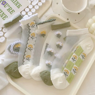 Trendy ladies summer transparent flower boat socks with glass stockings