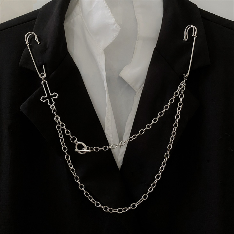| nameOriginal | Trendy Long Chain Pin Distinctive European and American Hip Hop Style Brooch Cold Style Cool Button Pin Jacket Clothes Accessories for Men and Women |