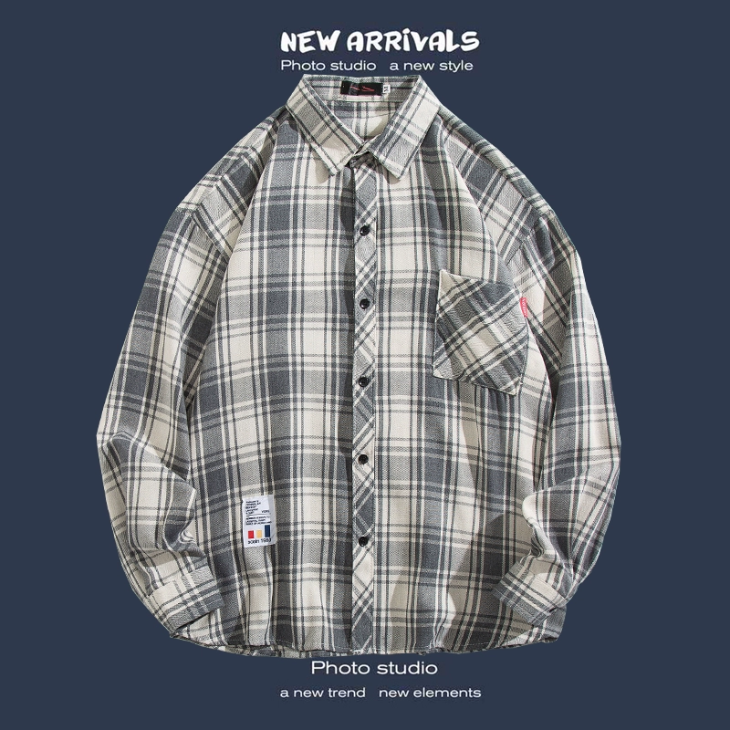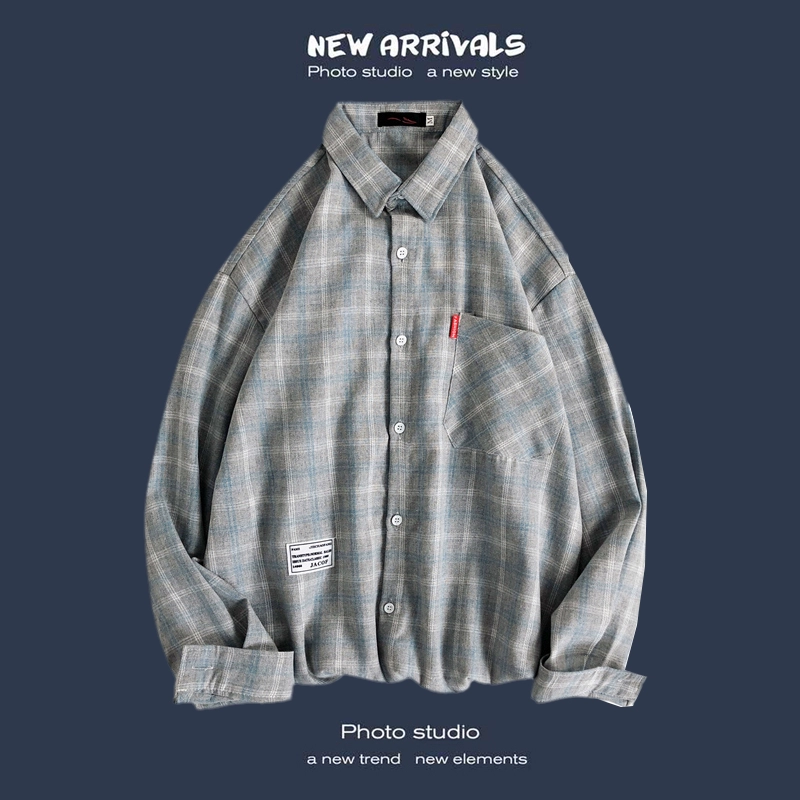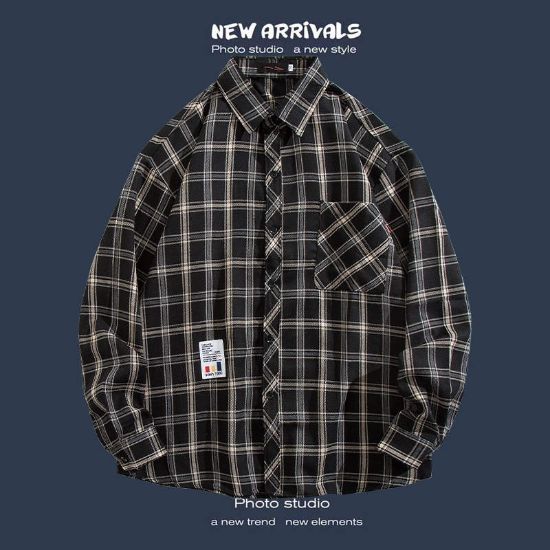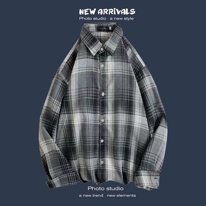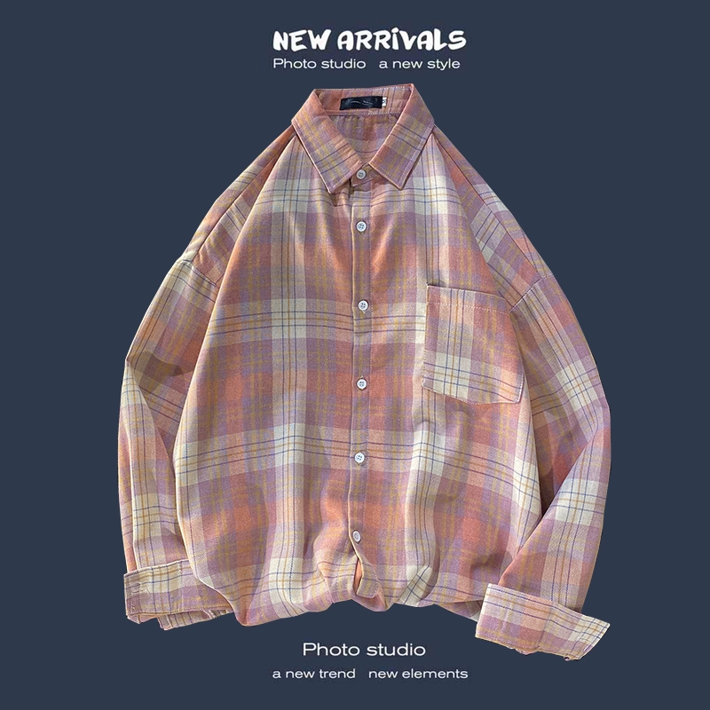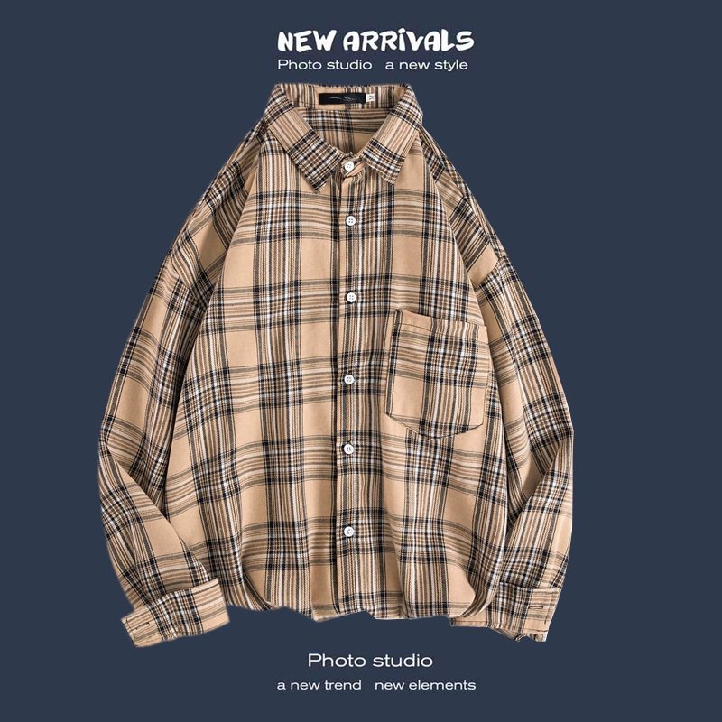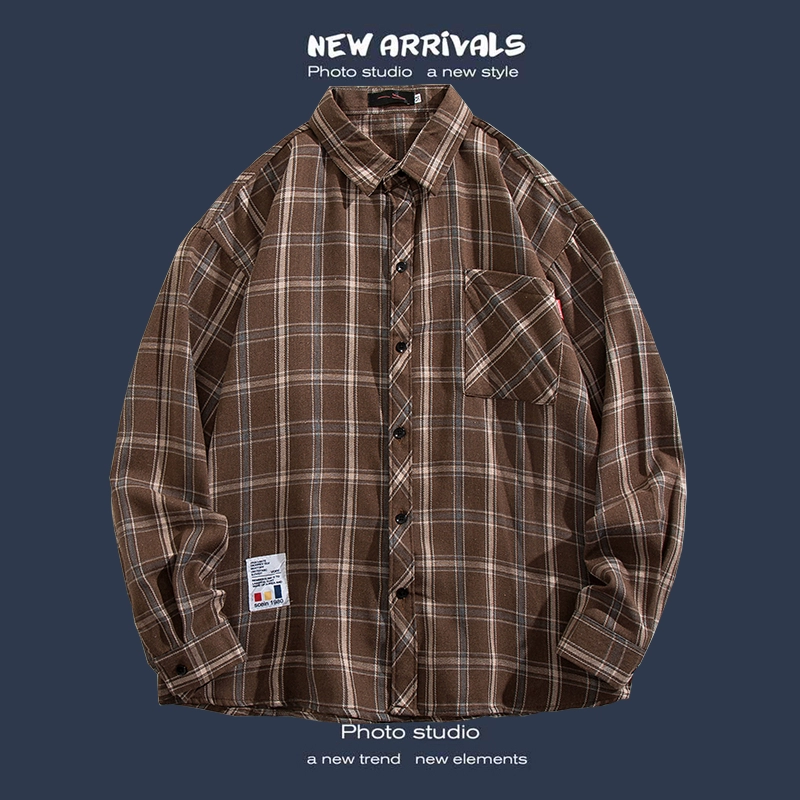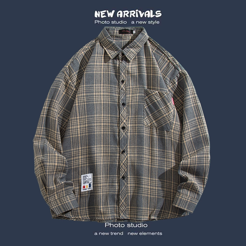 Trendy long-sleeved casual Hong Kong style Japanese plaid shirt