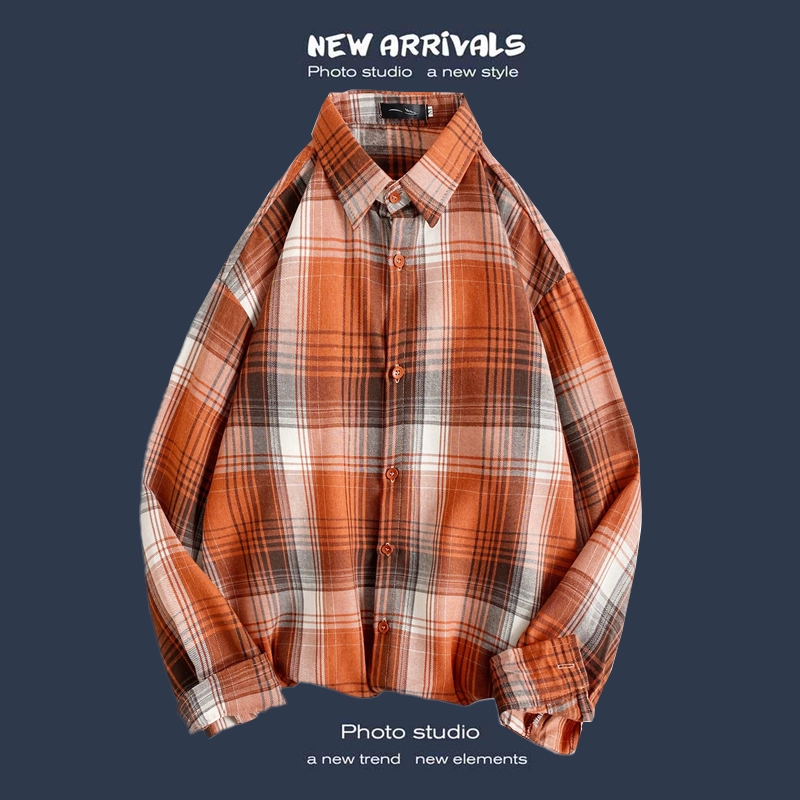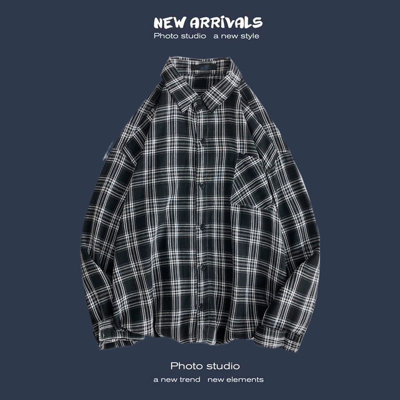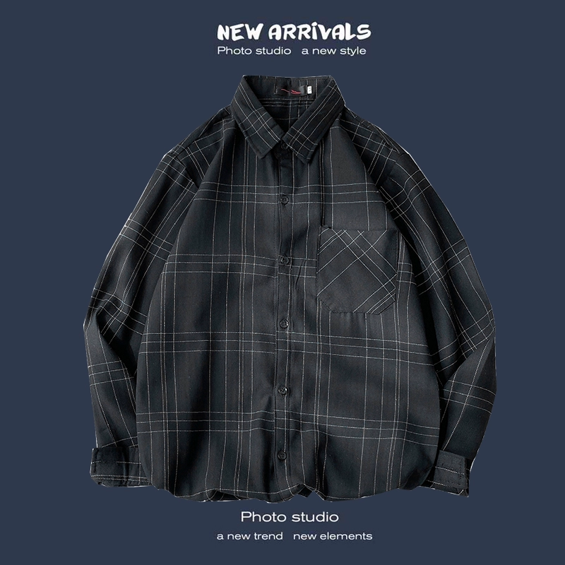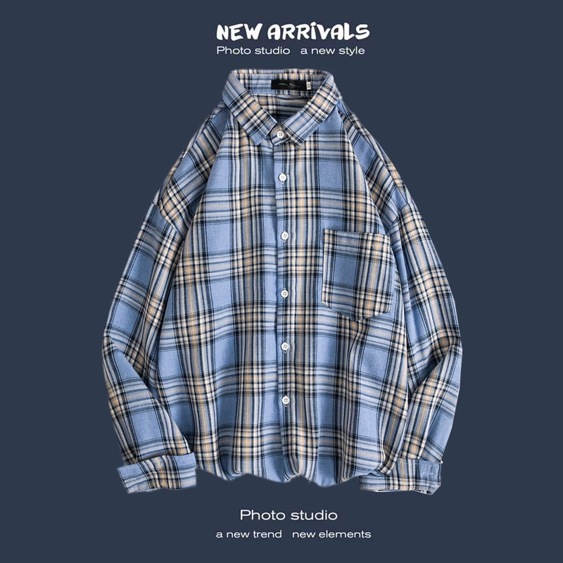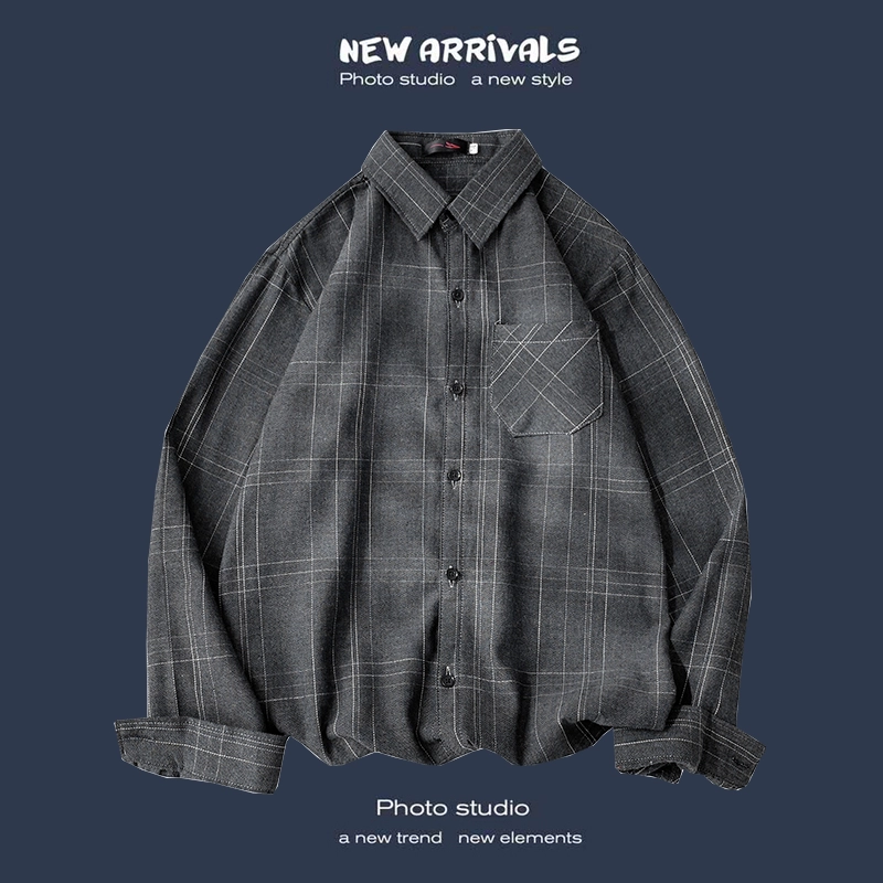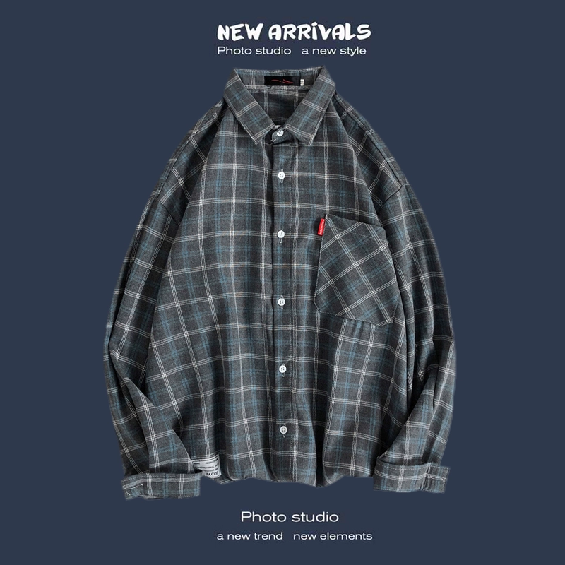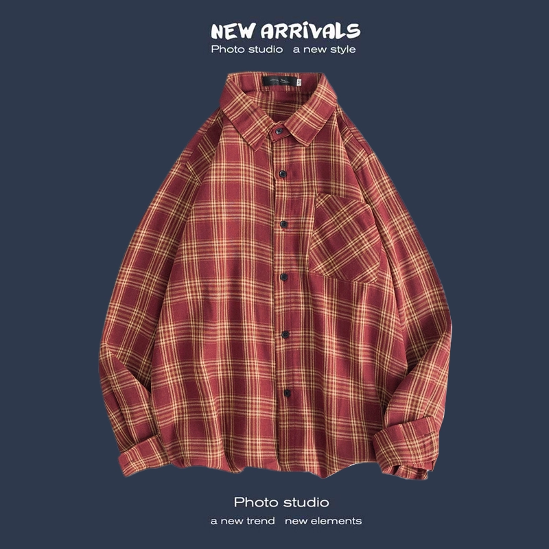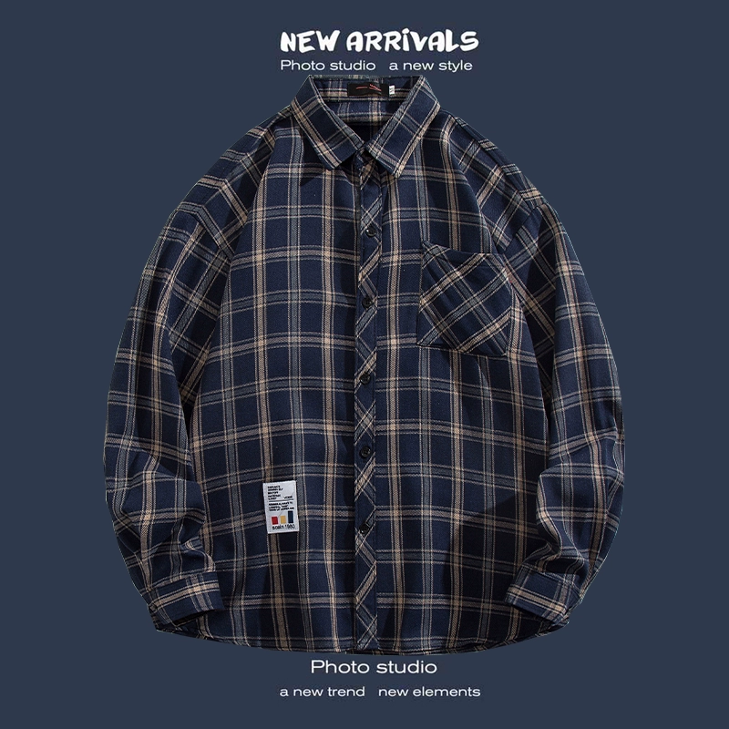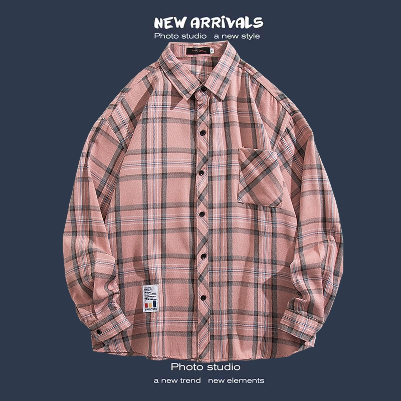 Trendy long-sleeved casual Hong Kong style Japanese plaid shirt
