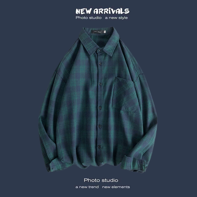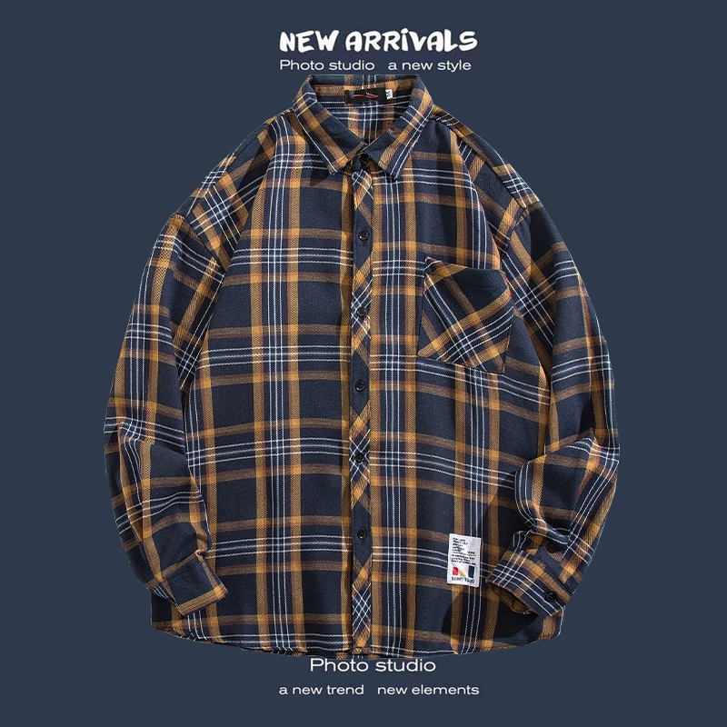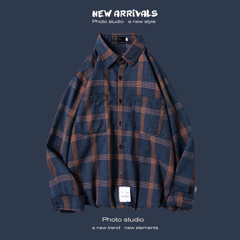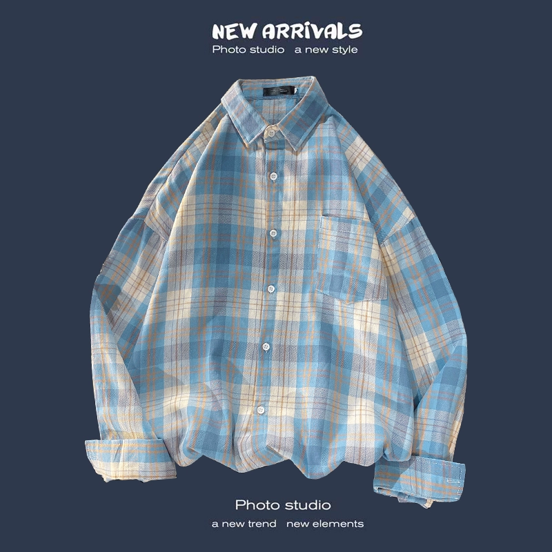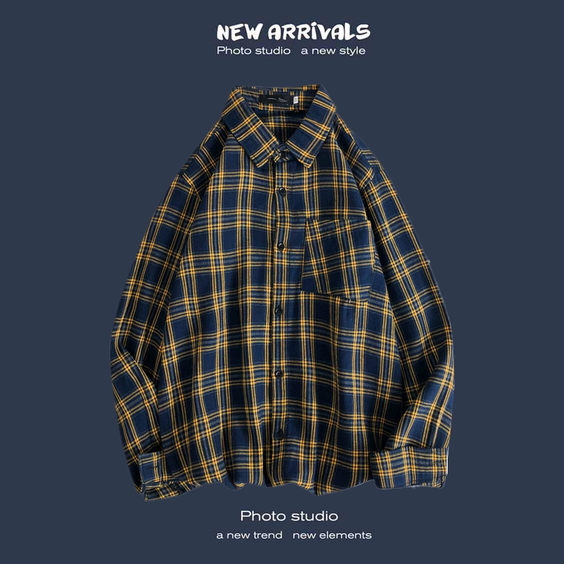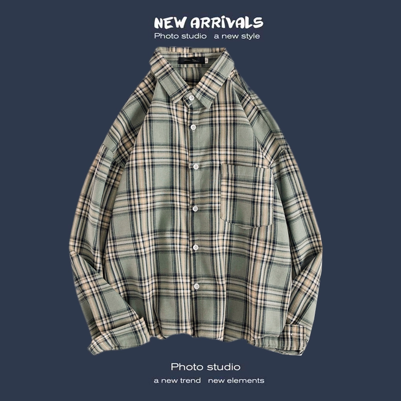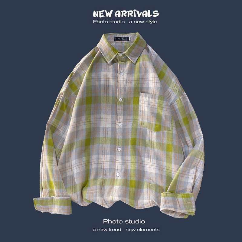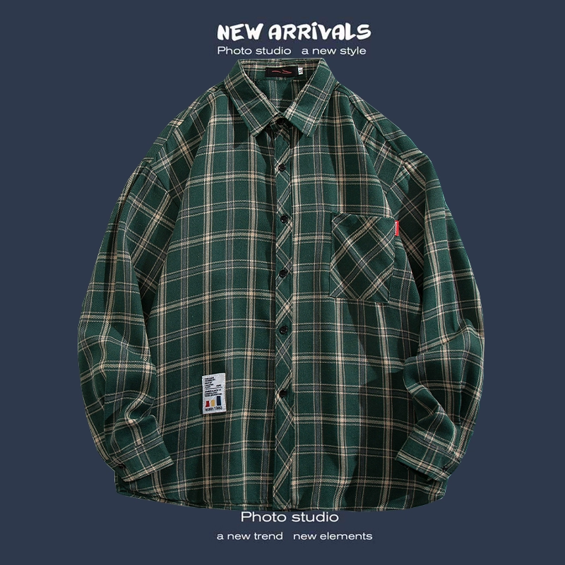 Trendy long-sleeved casual Hong Kong style Japanese plaid shirt