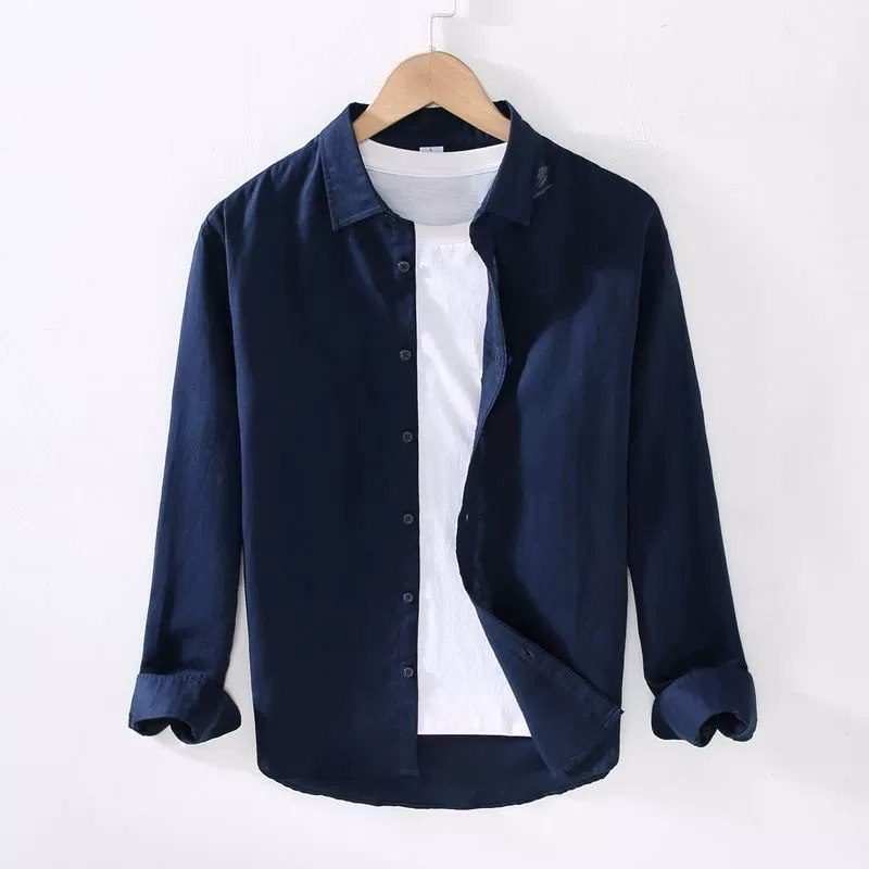 Trendy long-sleeved shirt, casual and breathable spring and summer linen