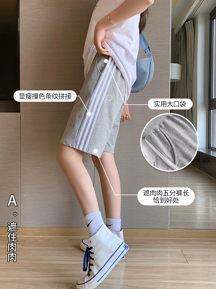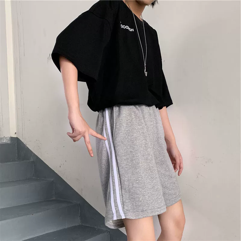 Fashionable brand men and women stripes ins Hong Kong style casual shorts