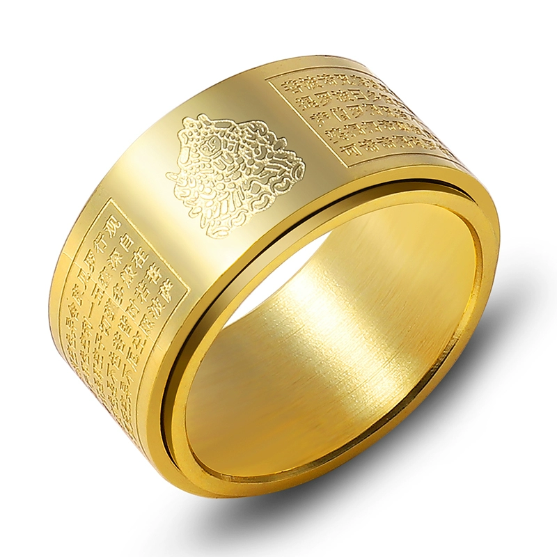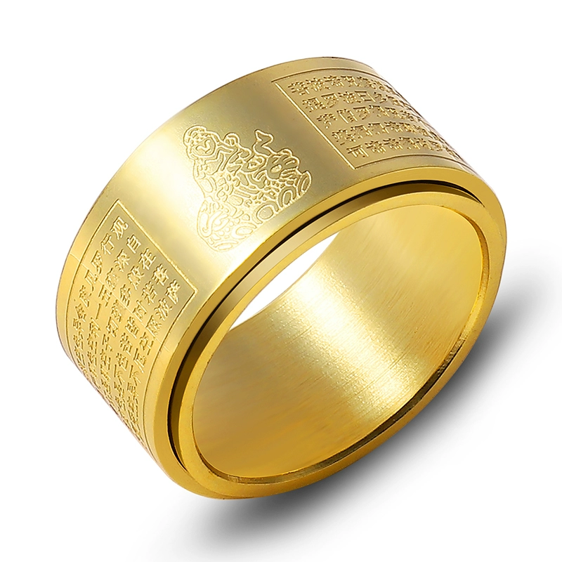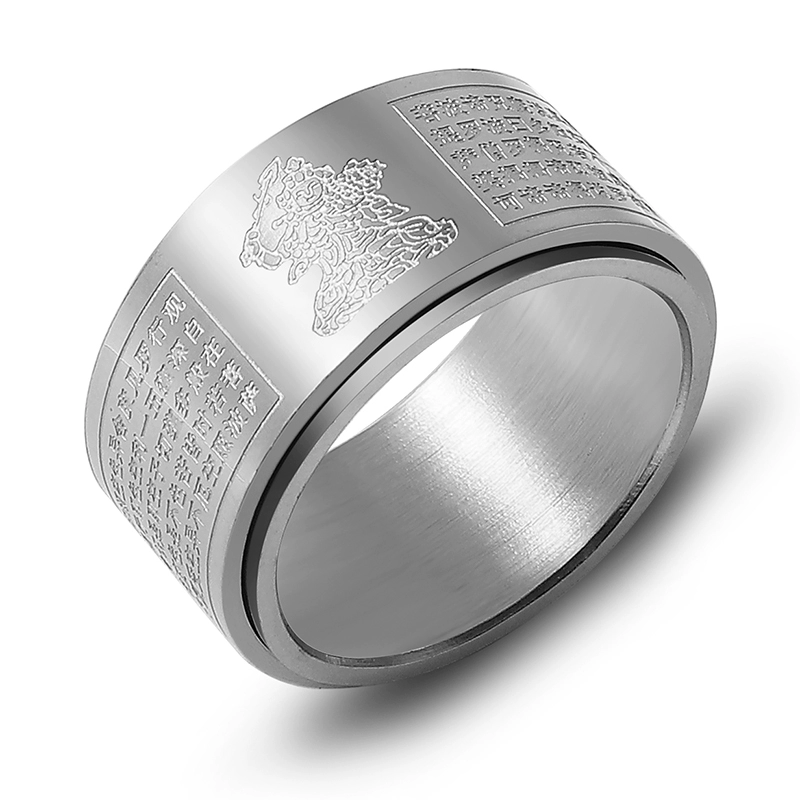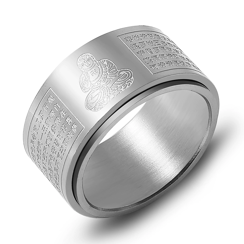 Tide Men’s Division of Buddha Heart Meridian Titanium Steel Uncontinental Rotating Ring Ring