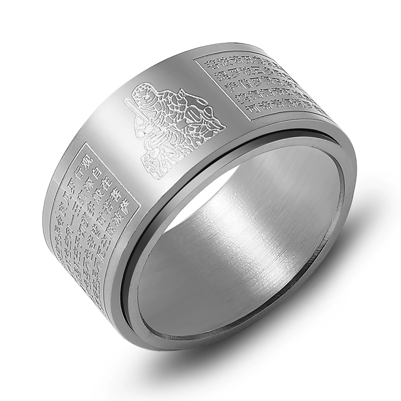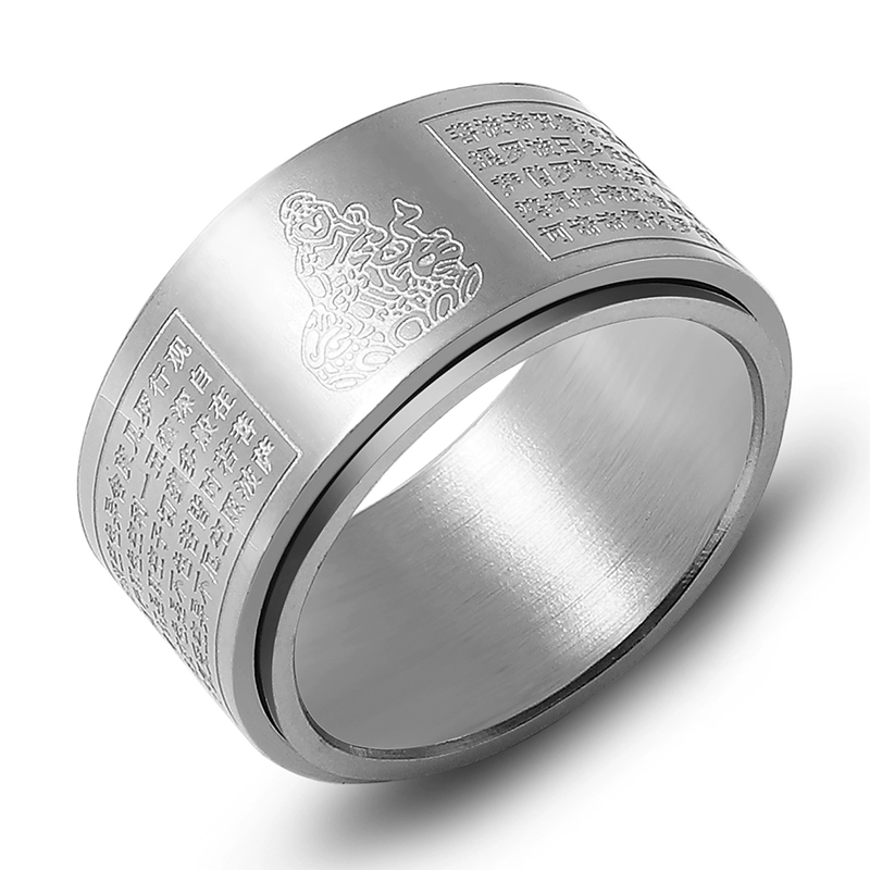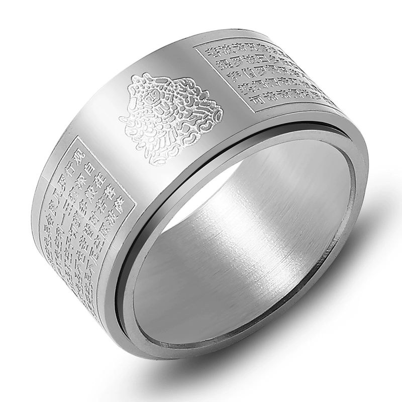 Trendy men's natal Buddha's Heart Sutra titanium steel decompression rotating ring