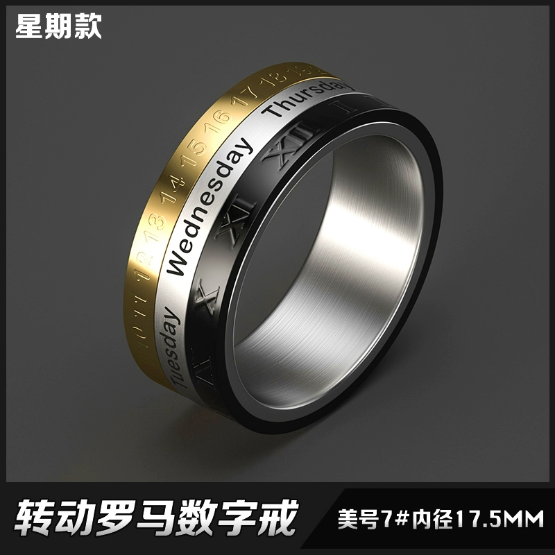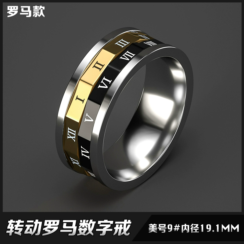 Trendy Men's Roman Numeral Titanium Steel Retro Men's Ring