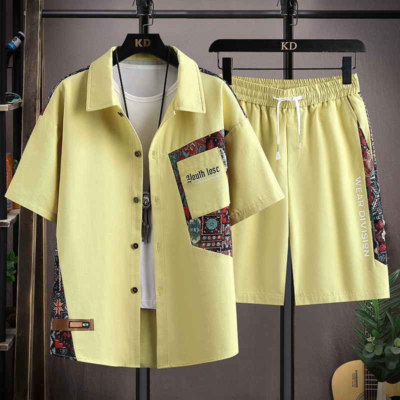 | nameOriginal | Trendy men's summer design patchwork short-sleeved shirt |