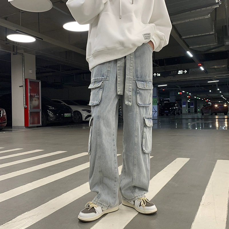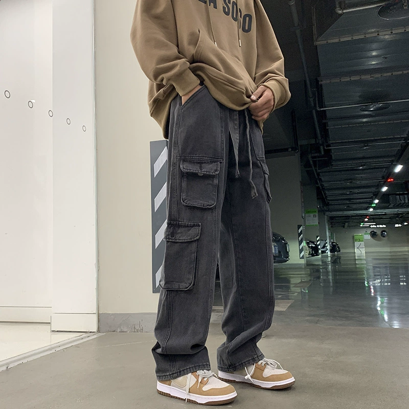 Trendy multi-pocket denim trousers for spring and autumn work wear