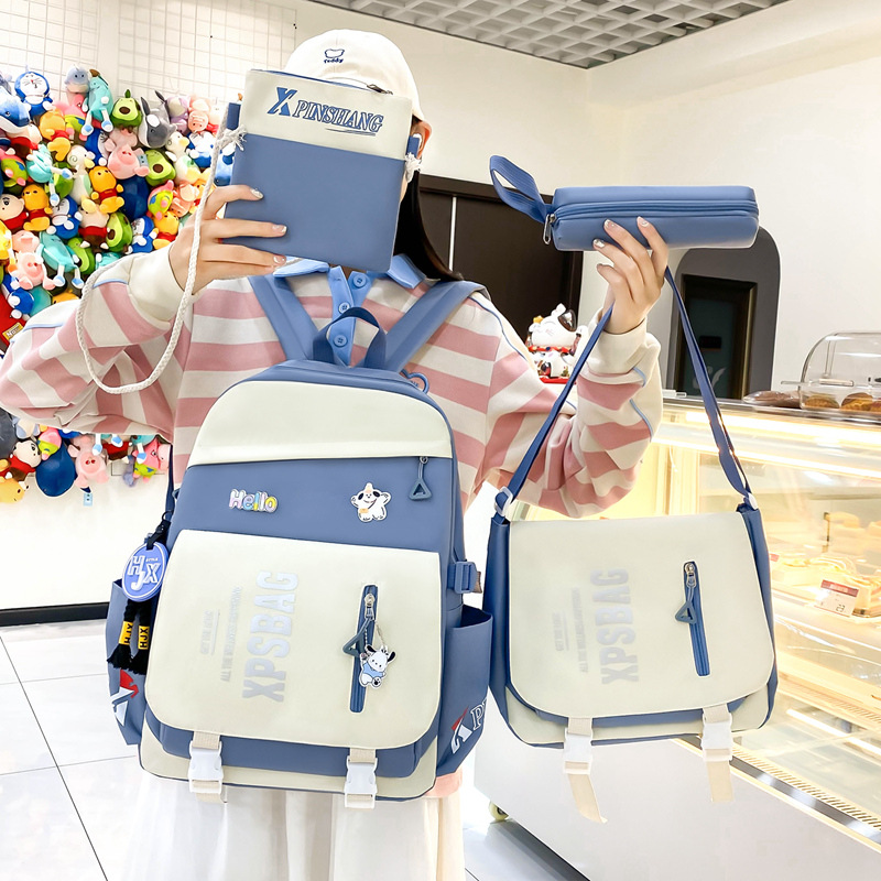 Trendy new high-looking junior high school student schoolbag women’s large capacity suit backpack Korean style contrast color Campus backpack men