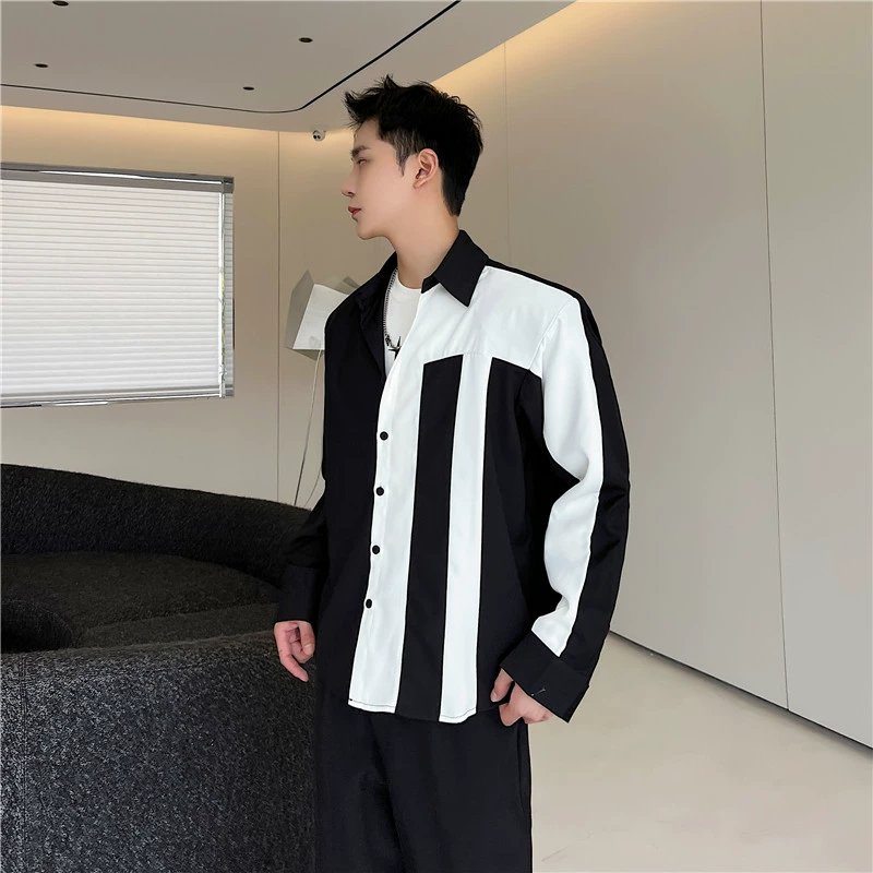 | nameOriginal | Trendy niche black and white contrast stitching long-sleeved casual shirt |