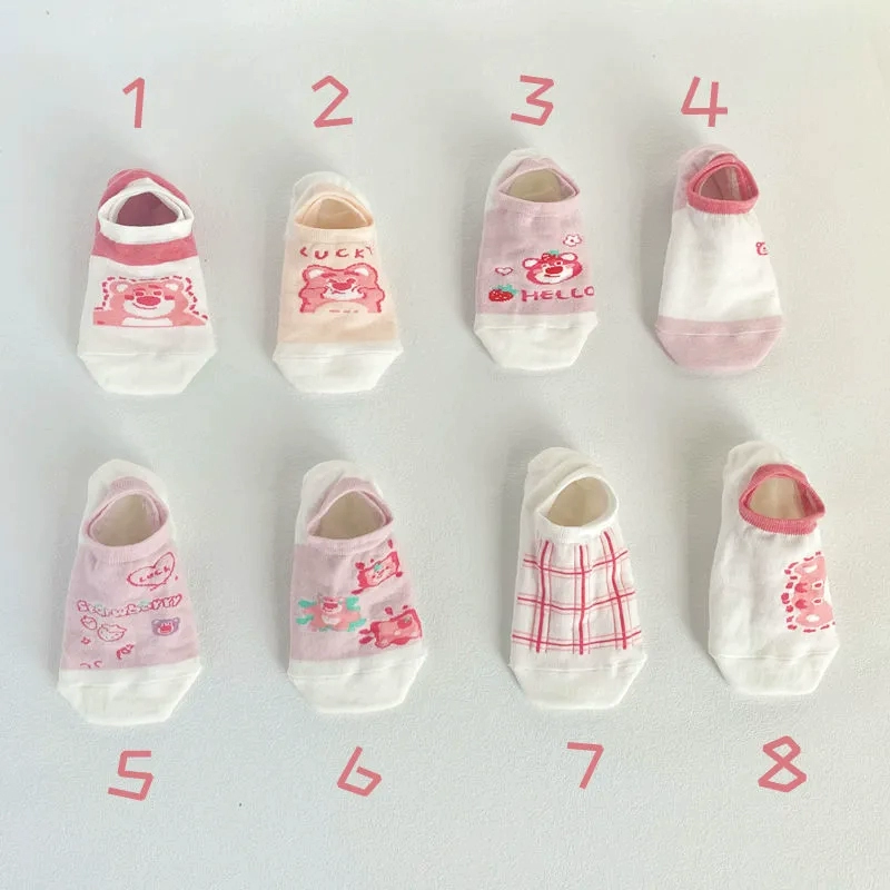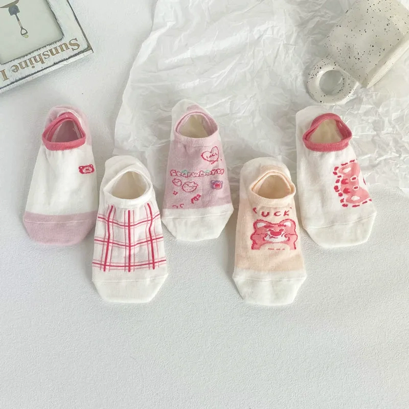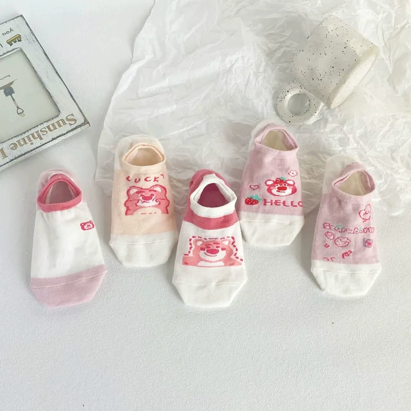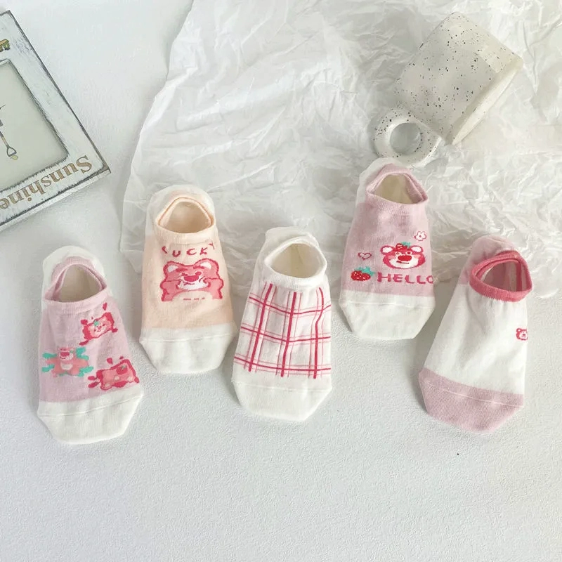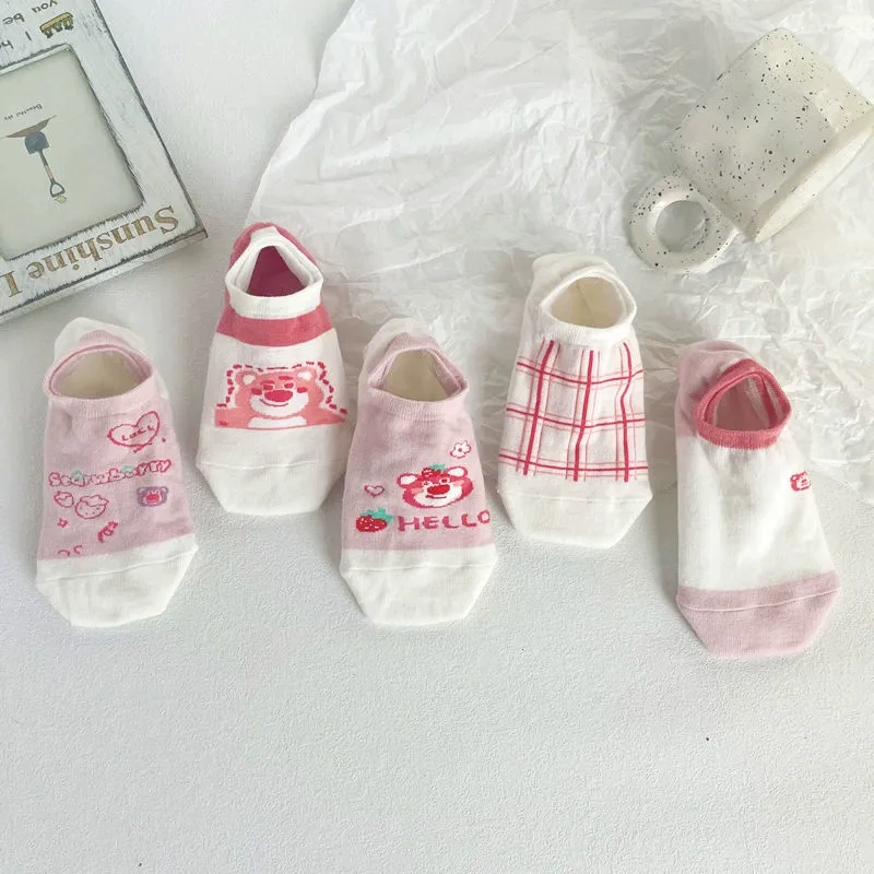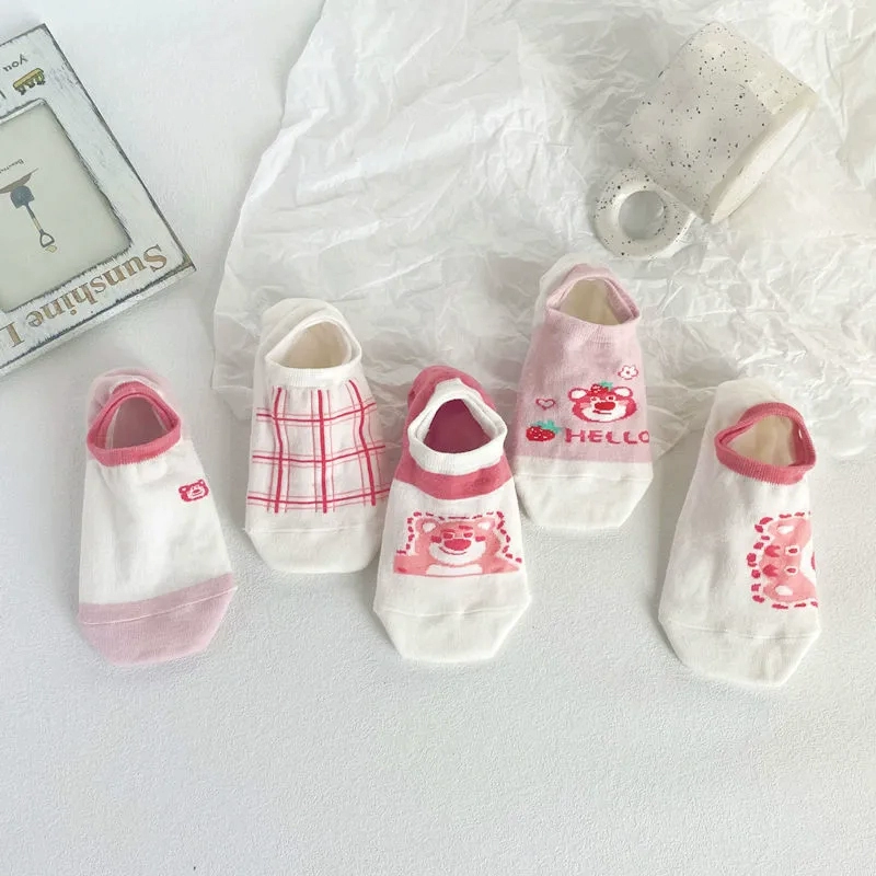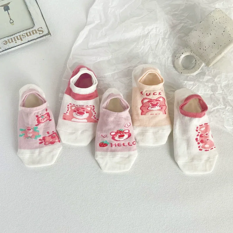 Trendy pink strawberry bear women’s summer non-falling boat socks