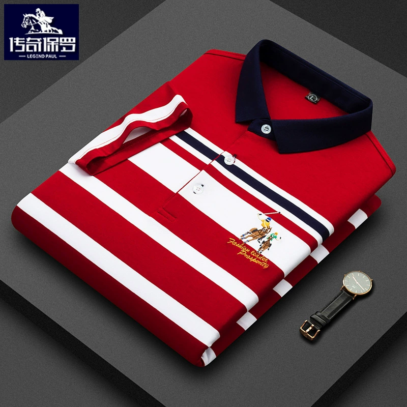 | nameOriginal | Trendy polo shirt with colorful stripes business middle-aged short sleeves |