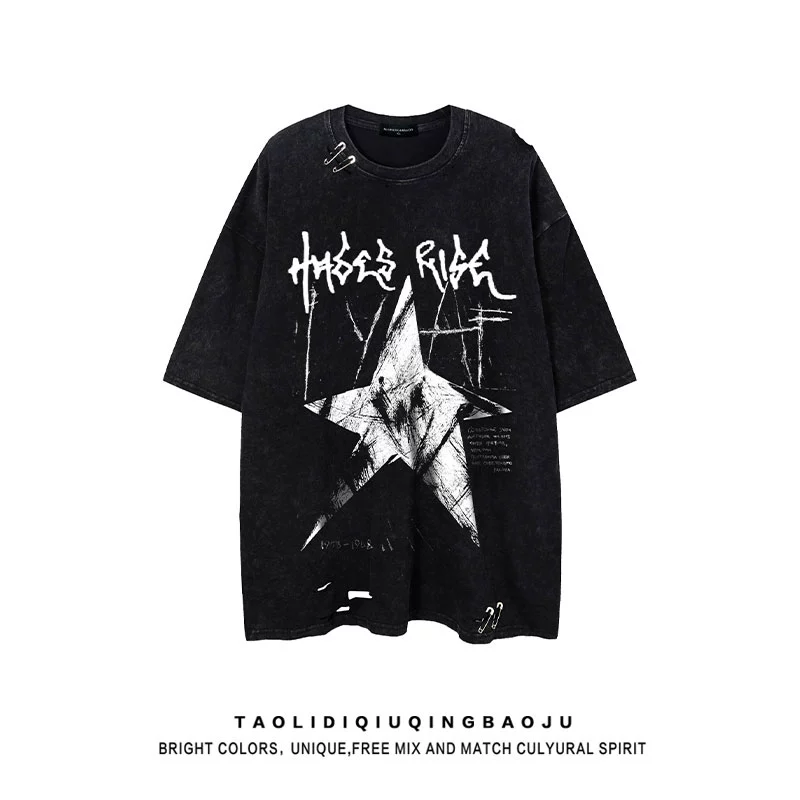 Trendy retro hiphop casual top short-sleeved T-shirt