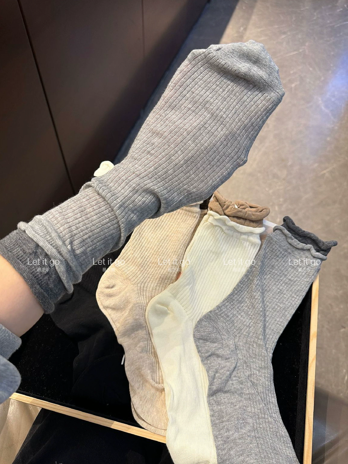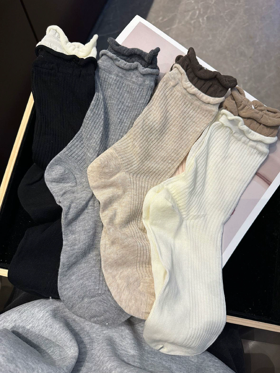 | nameOriginal | Trendy socks fake two-piece European fungus vertical striped mid-calf socks |