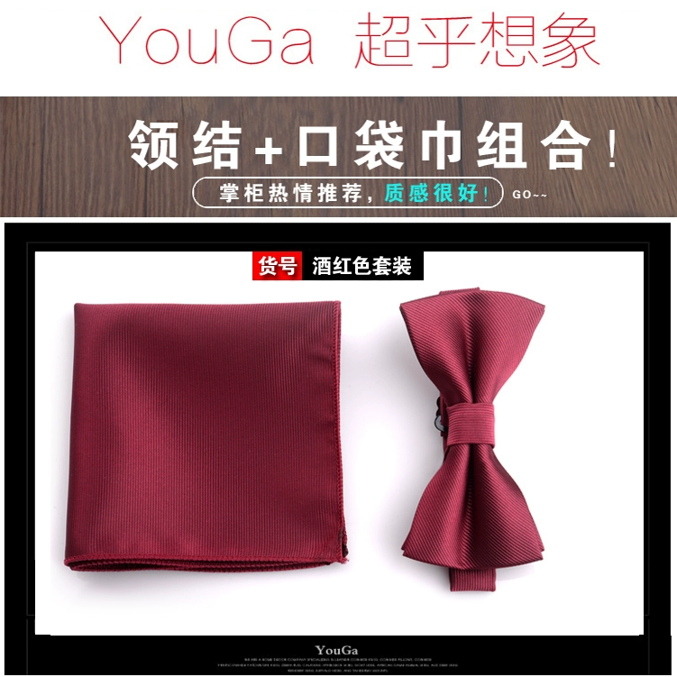 | nameOriginal | Trendy suit groom and groomsmen scarf burgundy bow tie |