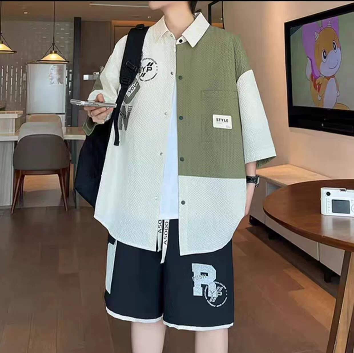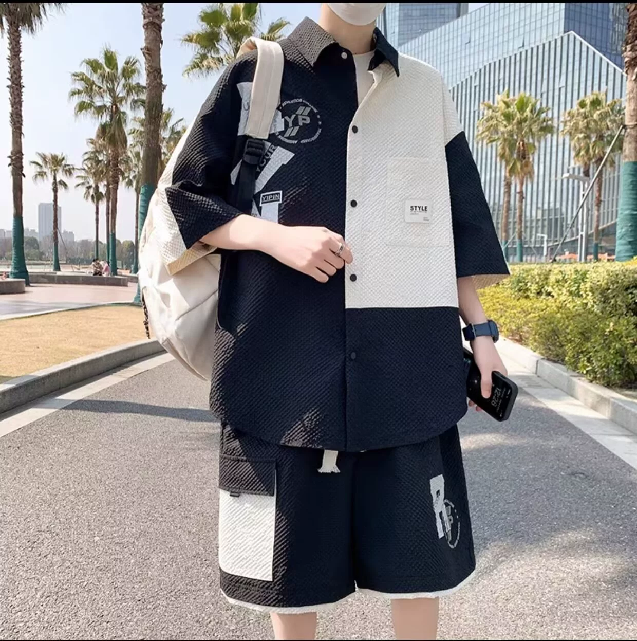| nameOriginal | Trendy summer large size contrasting color patchwork short-sleeved shirt |