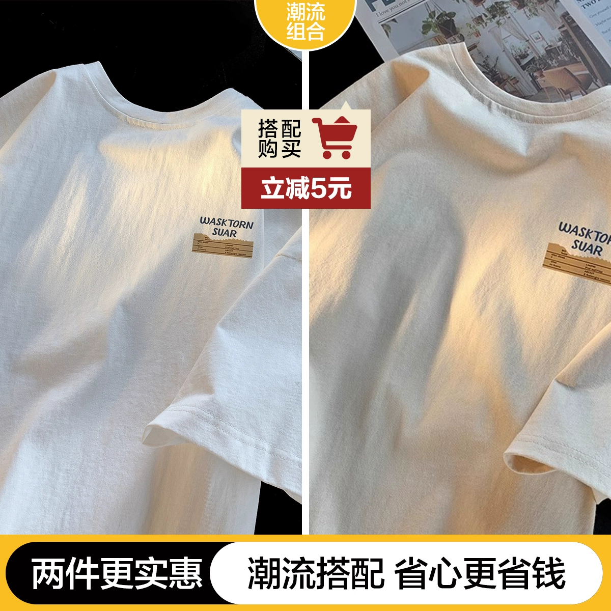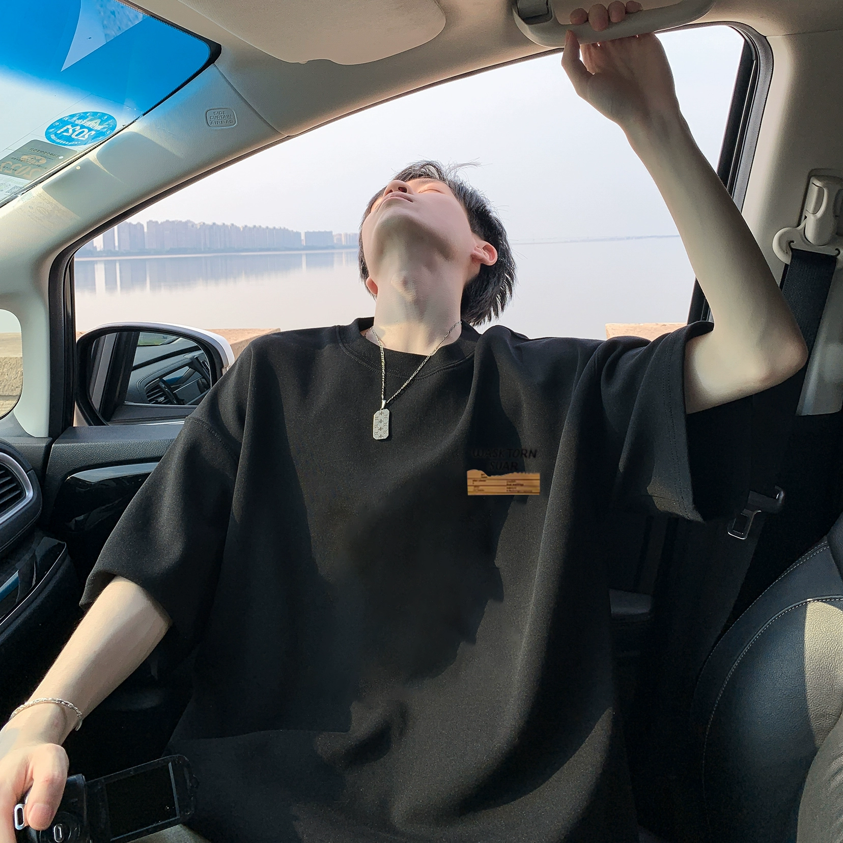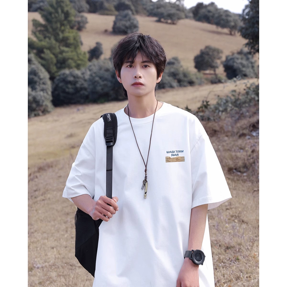 Trendy brand white men’s student casual short-sleeved T-shirt