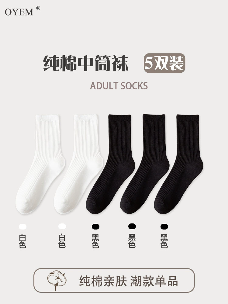| nameOriginal | Trendy women's pure cotton breathable sweat-absorbent black and white pile socks |