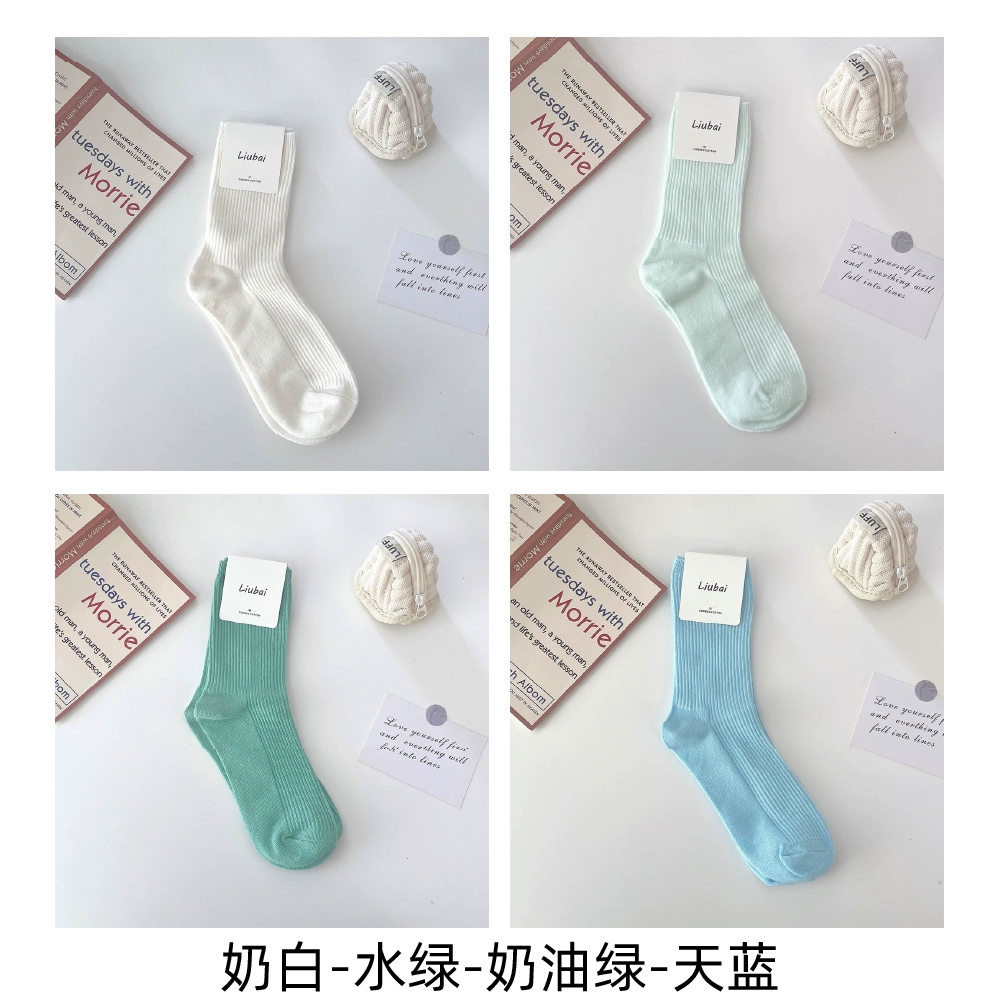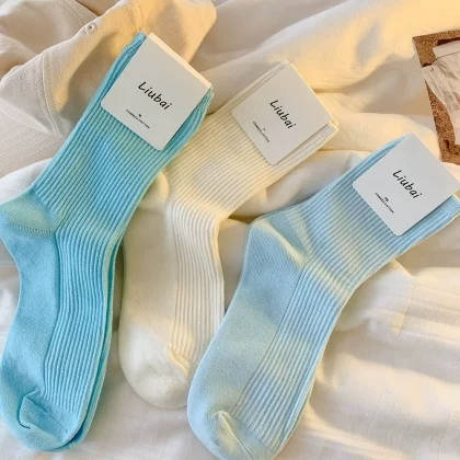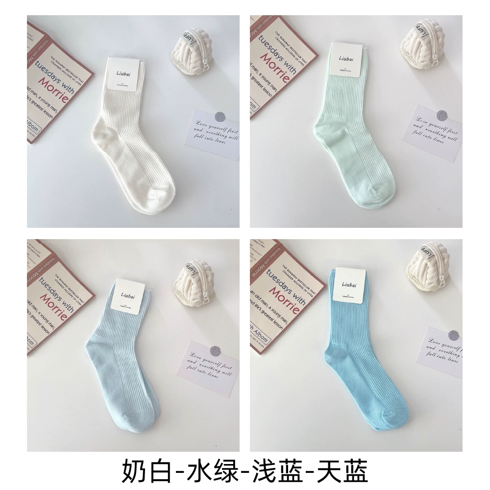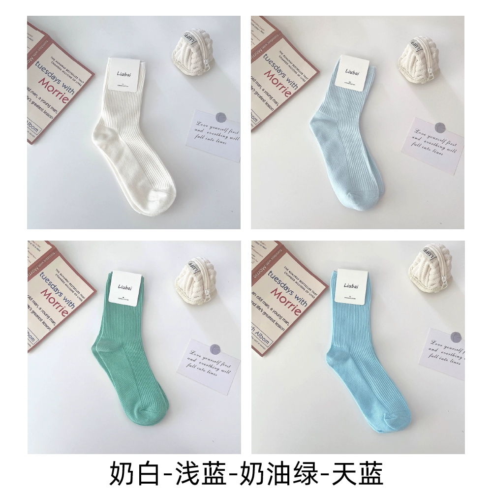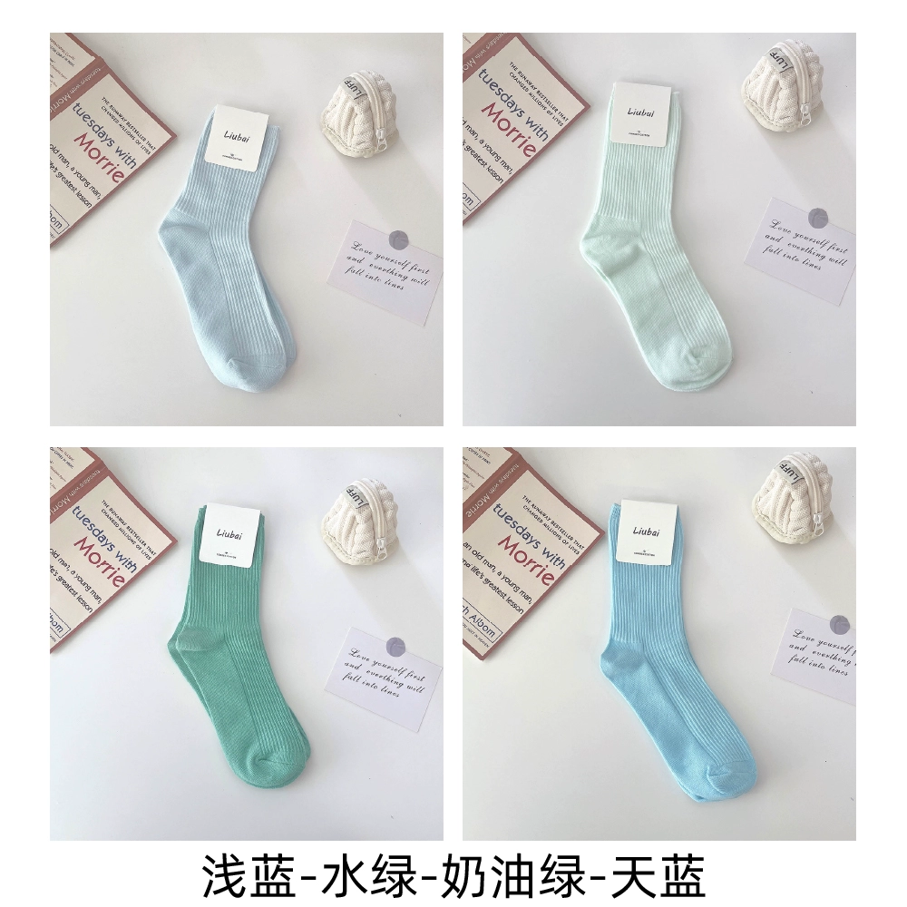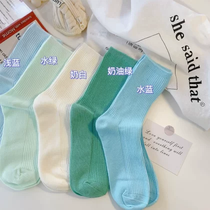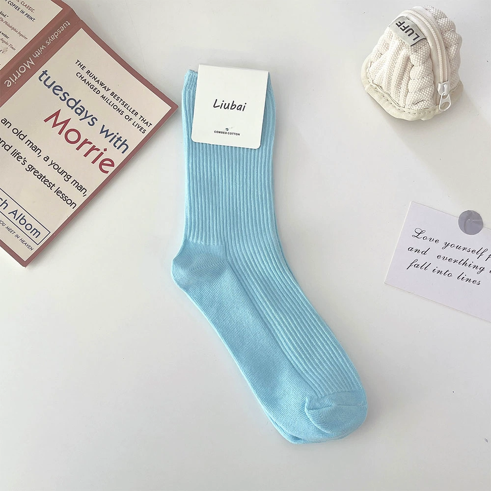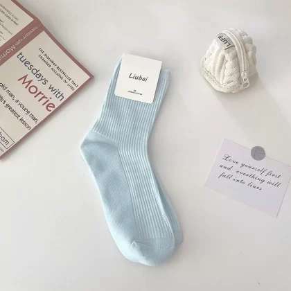 | nameOriginal | Trendy women's spring and autumn pure cotton blue simple style long socks |
