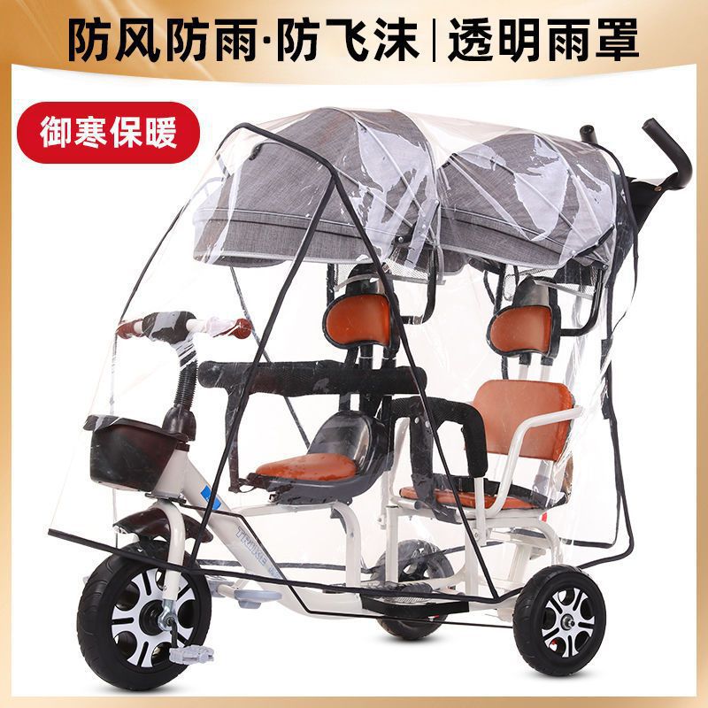 | nameOriginal | Trolley Rain Cover Double Children Raincoat Tricycle Transparent Twin Baby Carriage Windproof Cover Raincoat Universal Good |