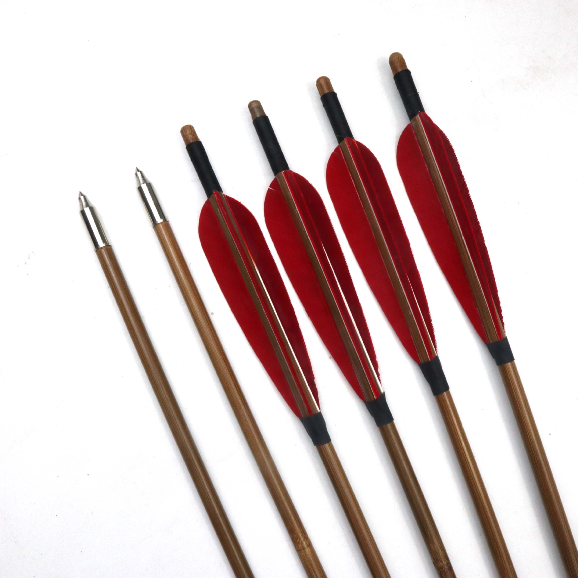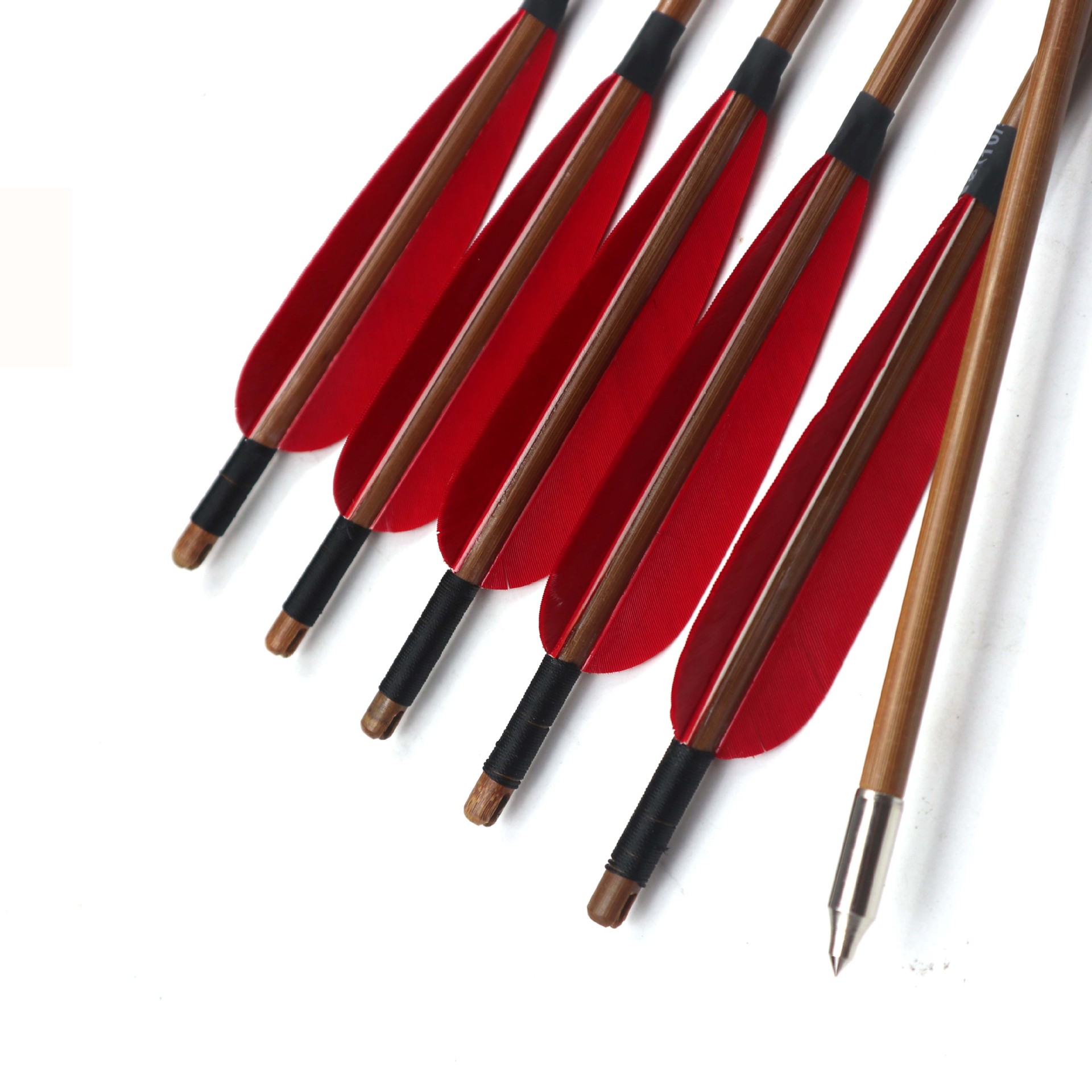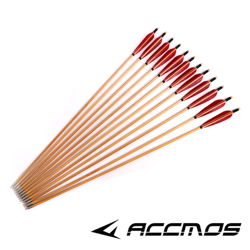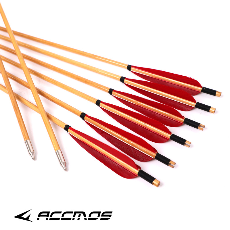 True Feather Bamboo Arrow Wooden Arrow Arrow Traditional Bow and Arrow Reversion Compound American Hunting Straight-pull Bow Shooting Competition Bow and Arrow Wooden Arrow