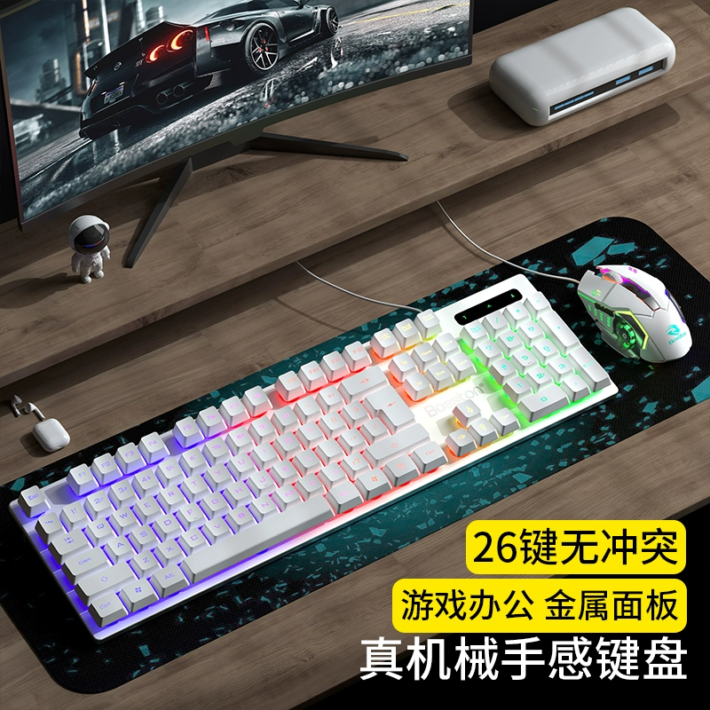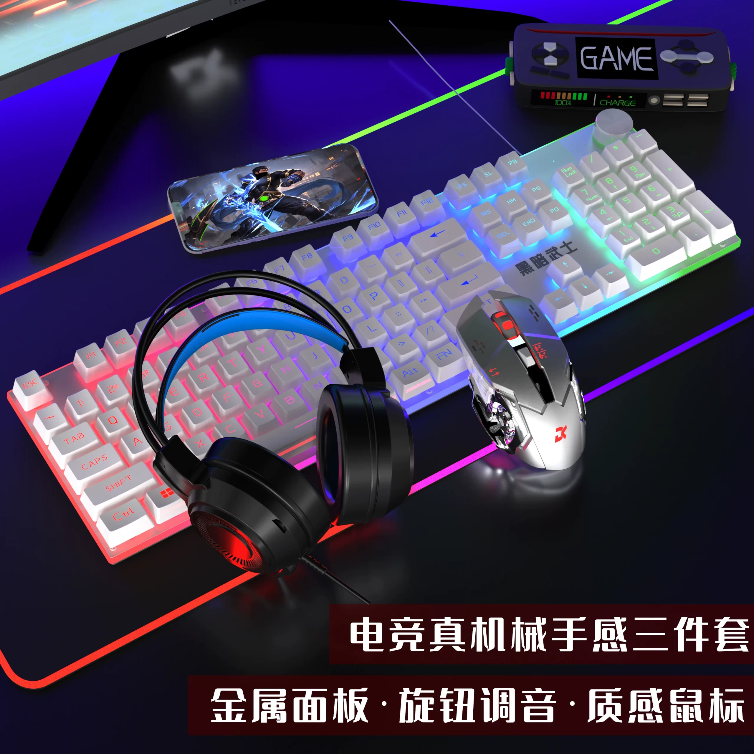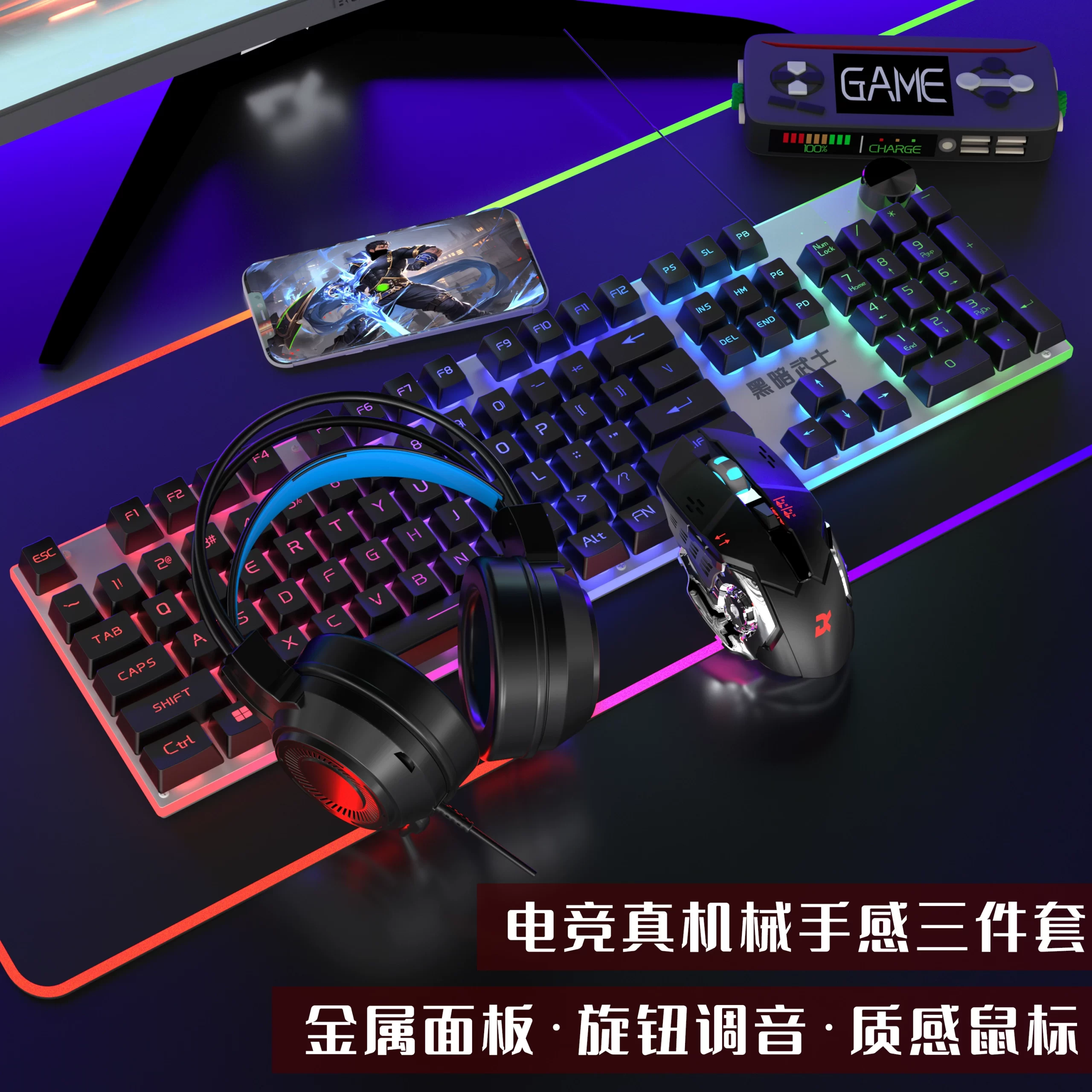True mechanical feel keyboard wired gaming keyboard mouse headset three-piece set desktop computer keyboard and mouse USB external
