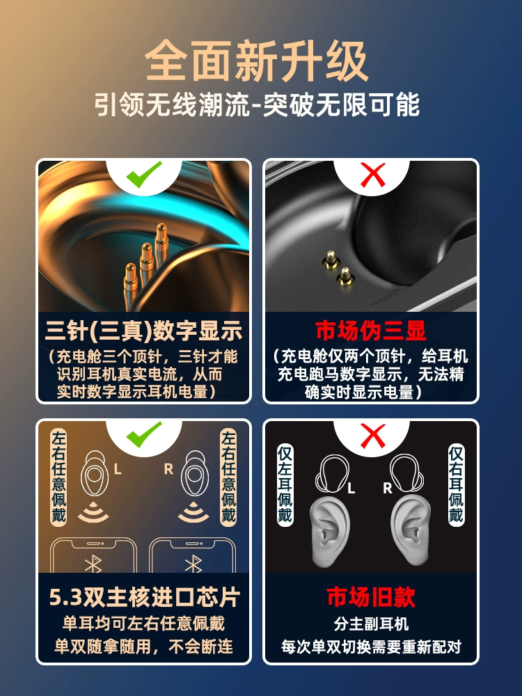 True Wireless Bluetooth Headset Sports In-Ear 2024 New Noise Reduction Ultra-Long Battery Life High-end Suitable for Apple and Huawei