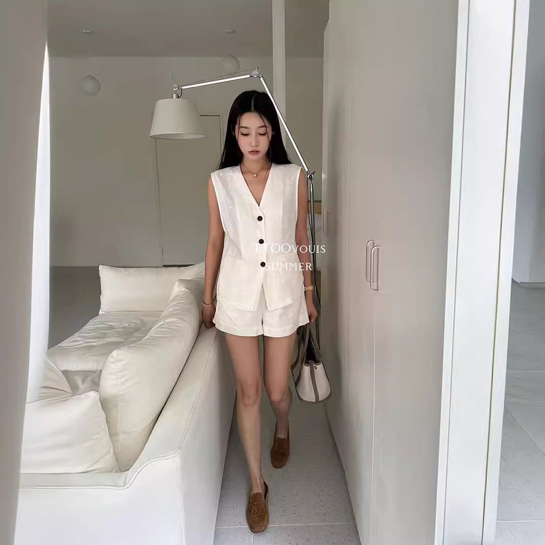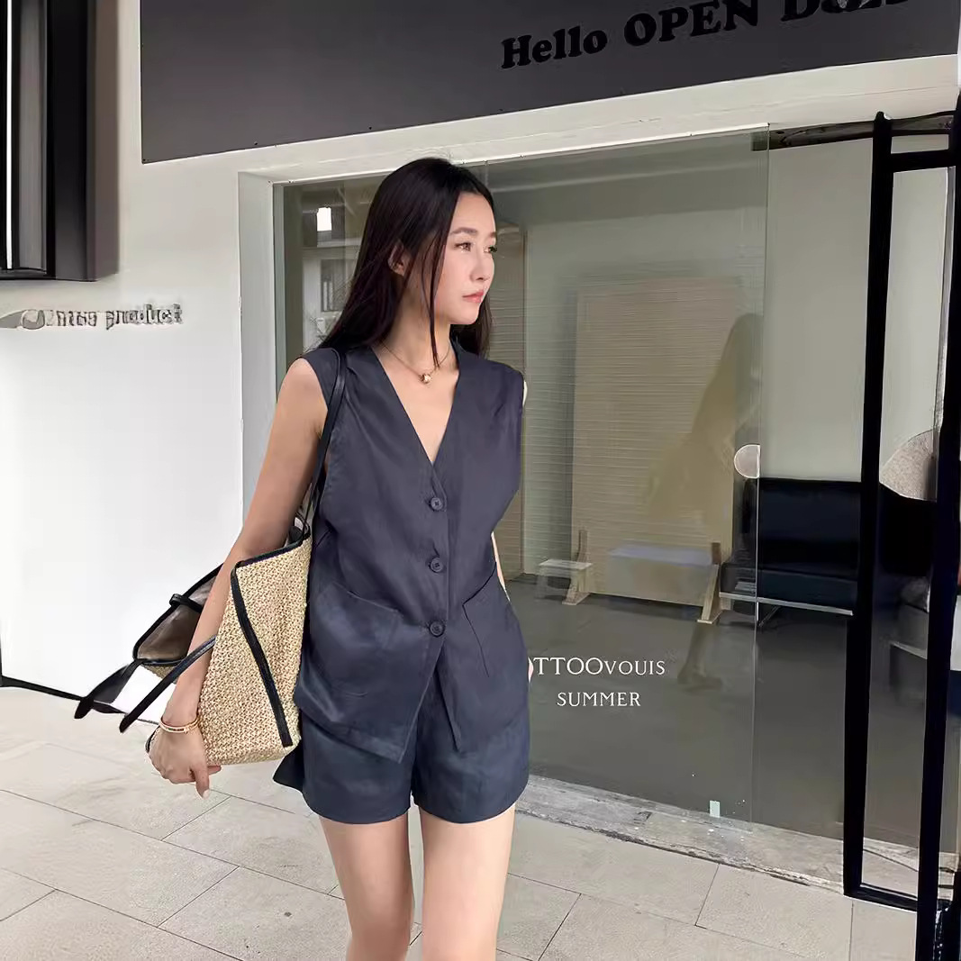 | nameOriginal | TTOO Linen Fashion suit Women's 2024 Summer New Arrival Mid-Waist Wide-Leg Shorts Short Waistcoat V-Neck Thin Vest |