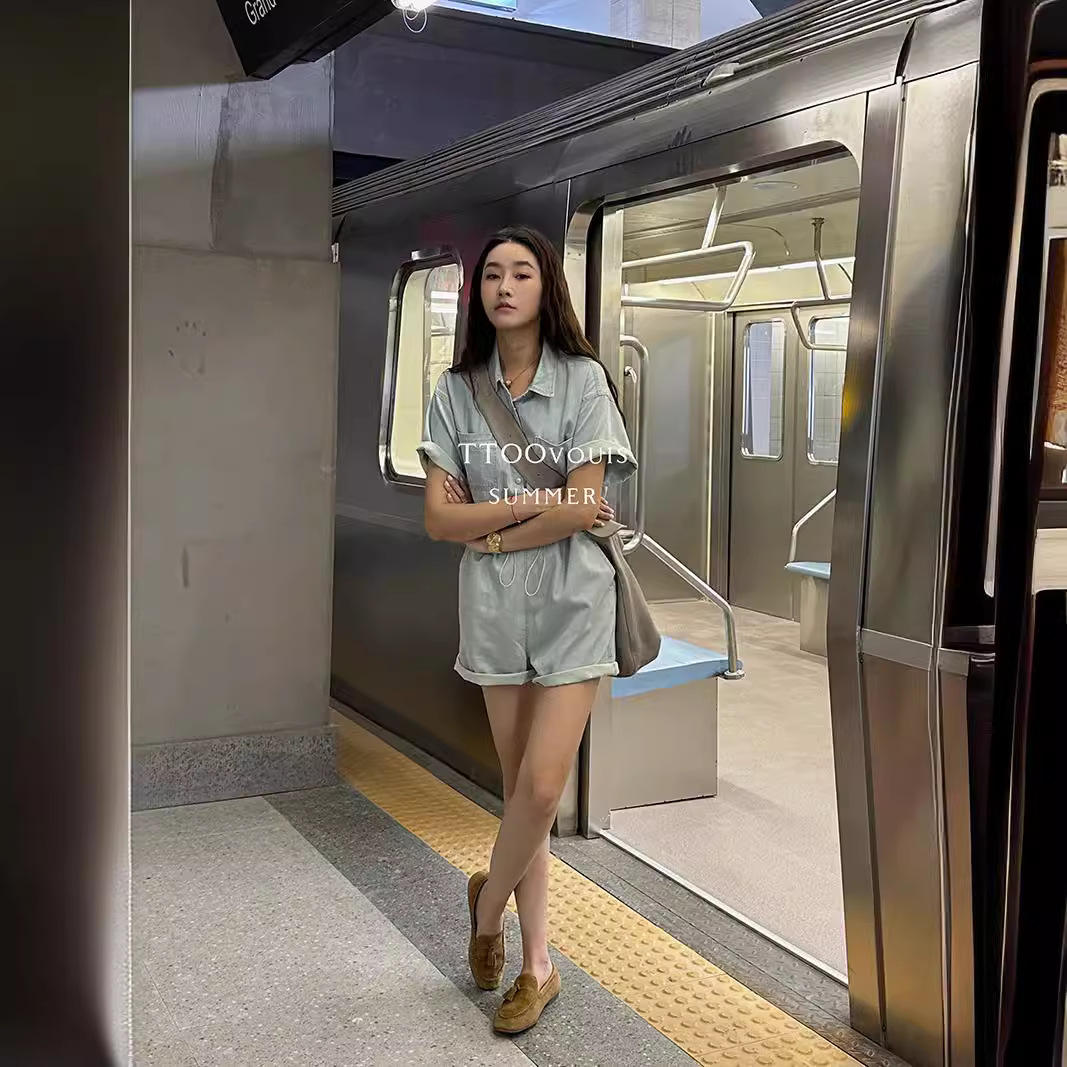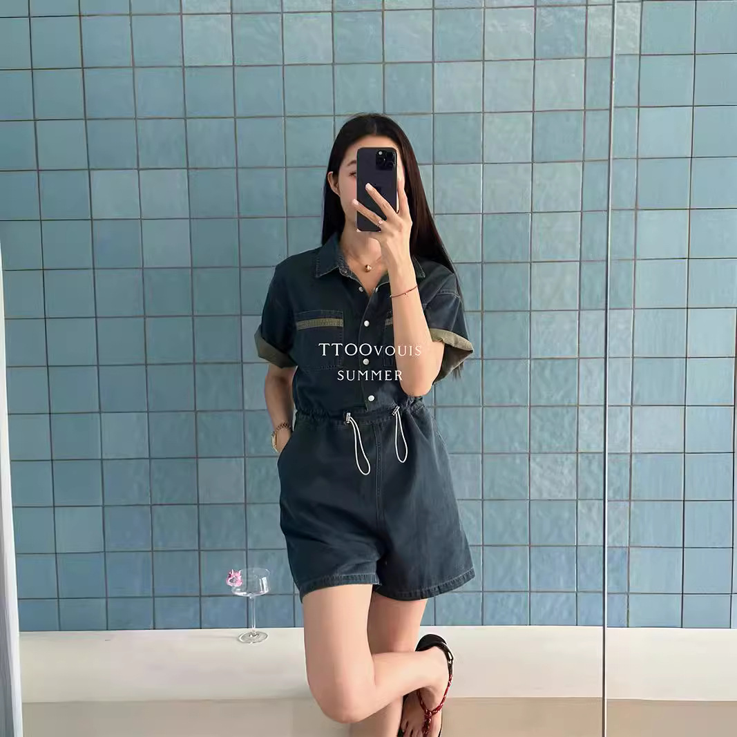 | nameOriginal | TTOO Thirteen Line 1787 Washed Denim Pumpsuit Waist-closed Pleated Shirt Collar Work Clothes Short-sleeved Style Pumpsuit for Women |