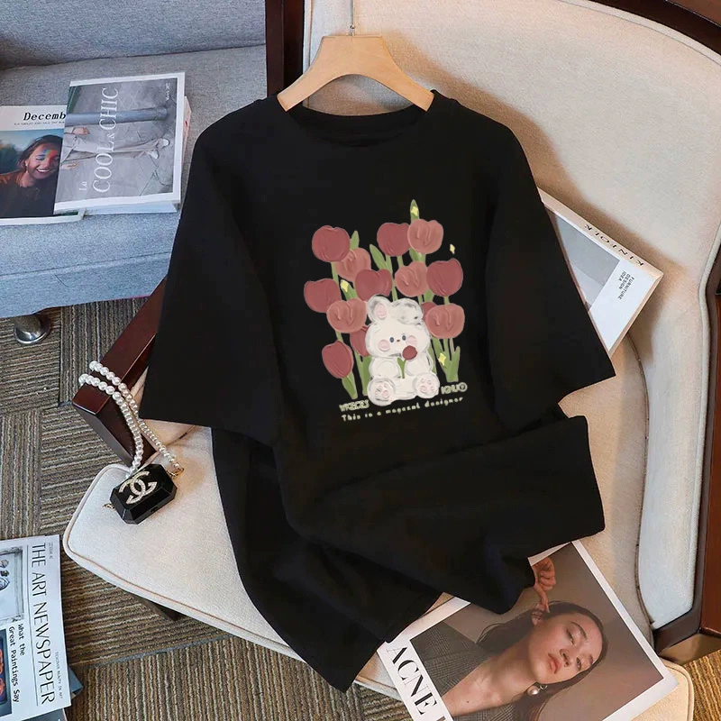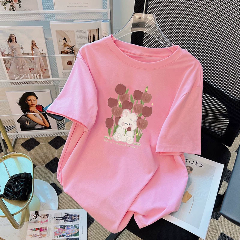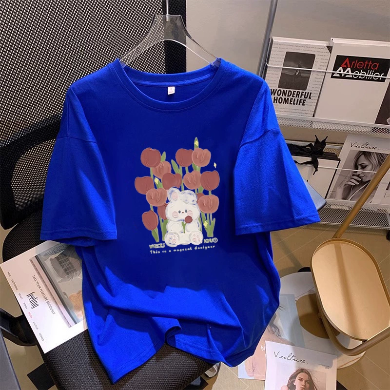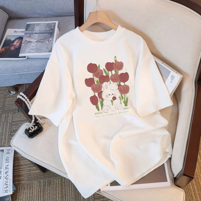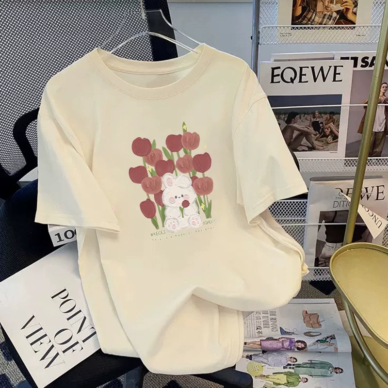 | nameOriginal | Tulip white short-sleeved T-shirt for women 2024 summer new design niche half-sleeved loose top for small people |