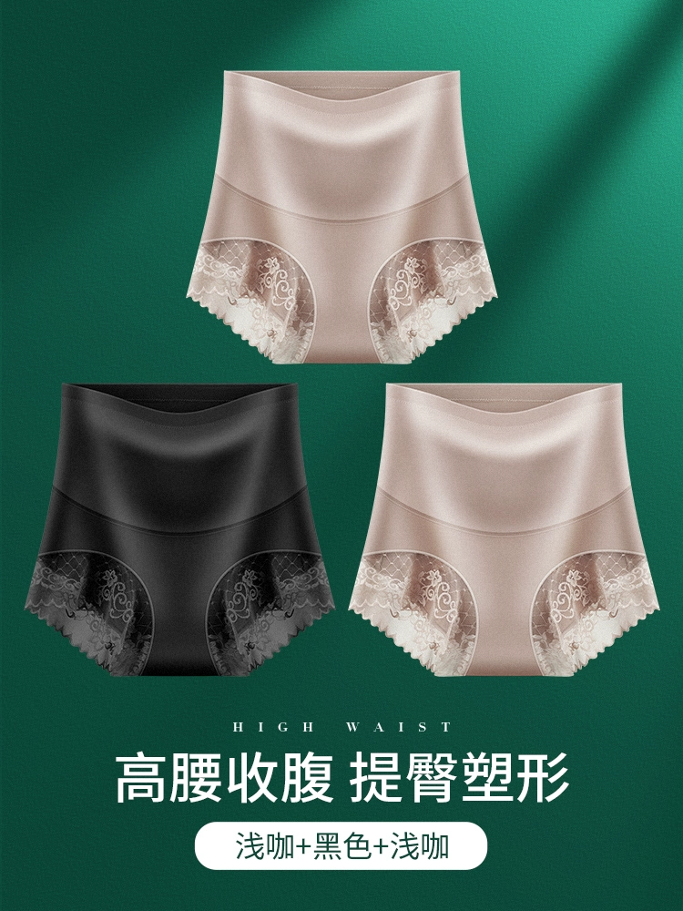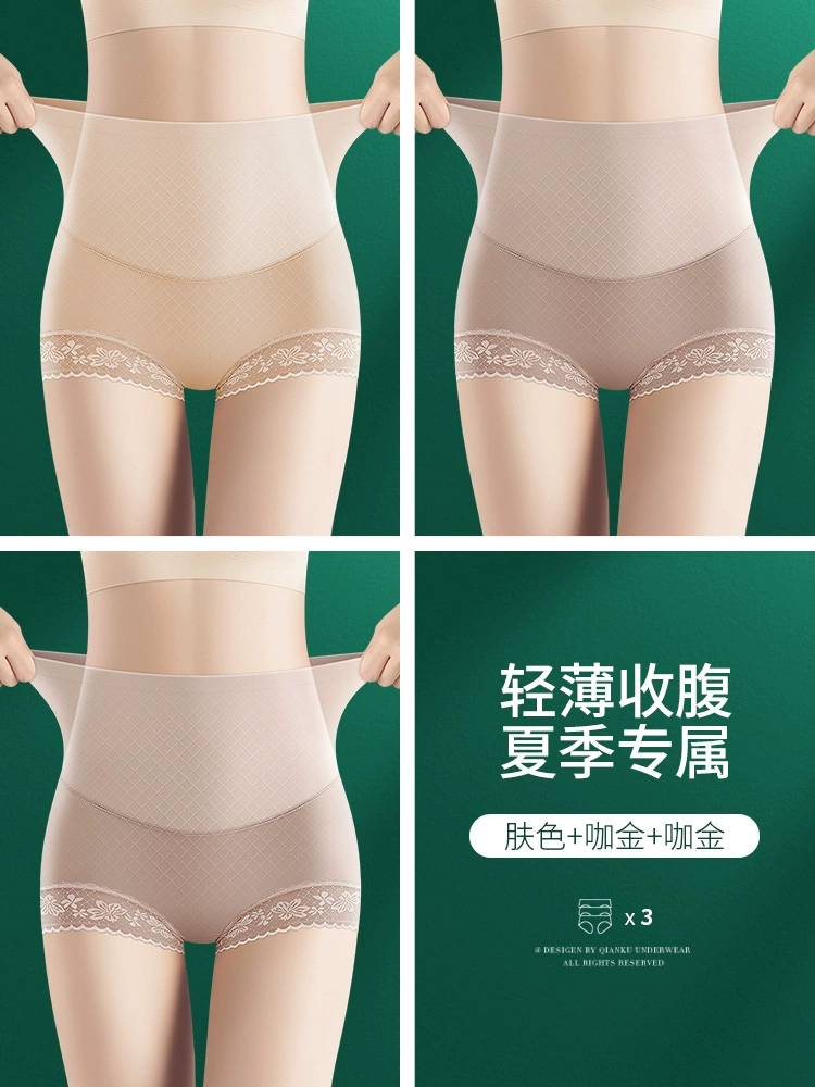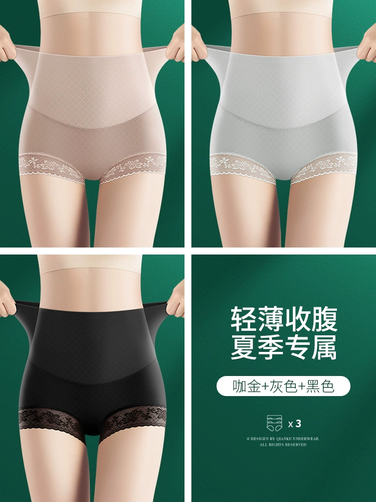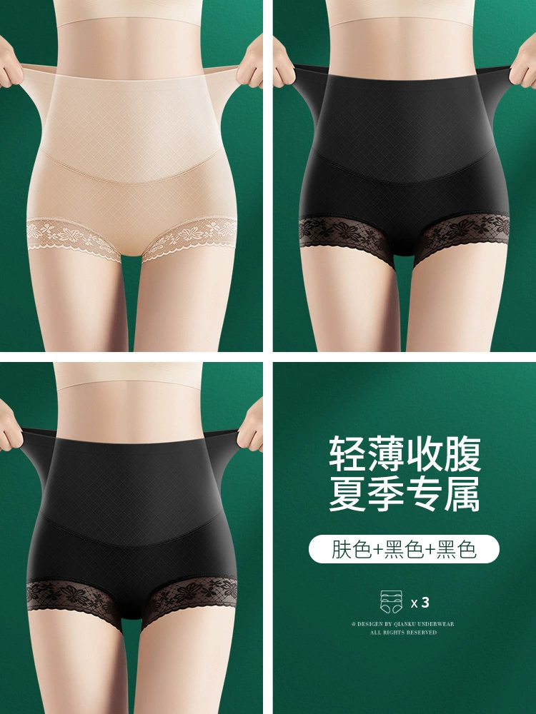 Abdomen-tightening high waist underwear for women, strong belly-tightening, markless antibacterial cotton crotch buttock lifting, large size shorts in summer
