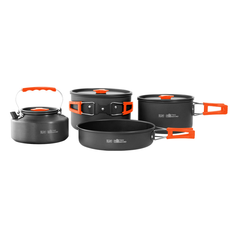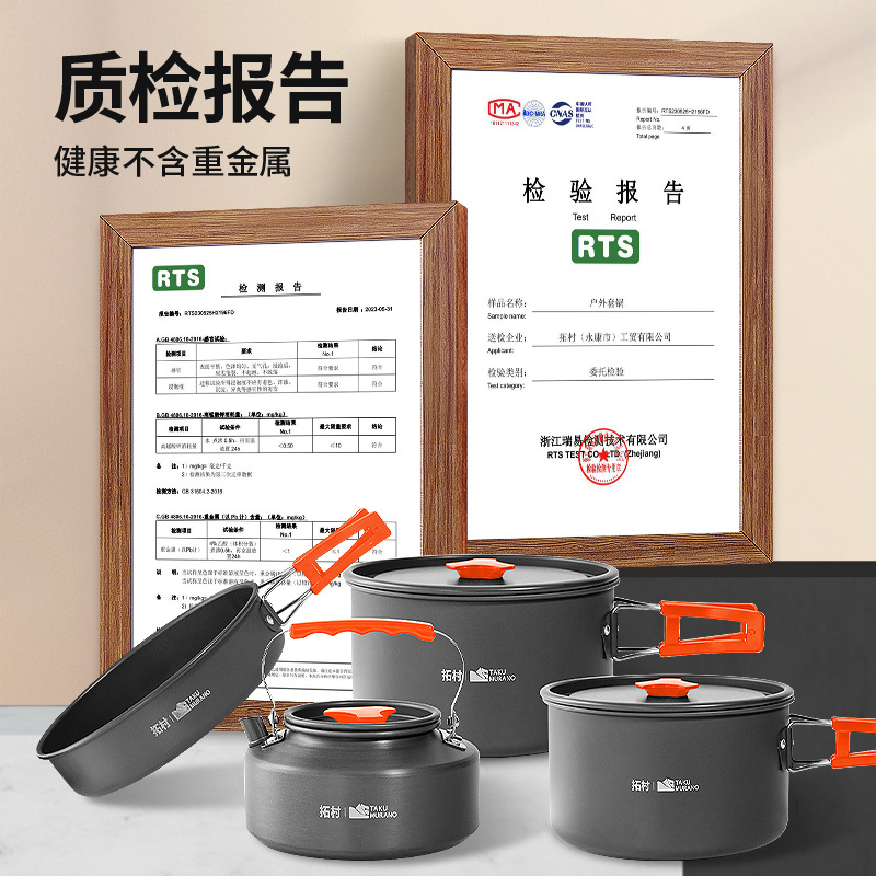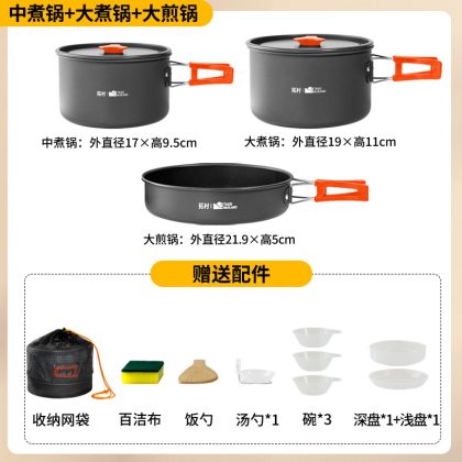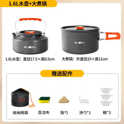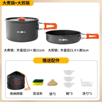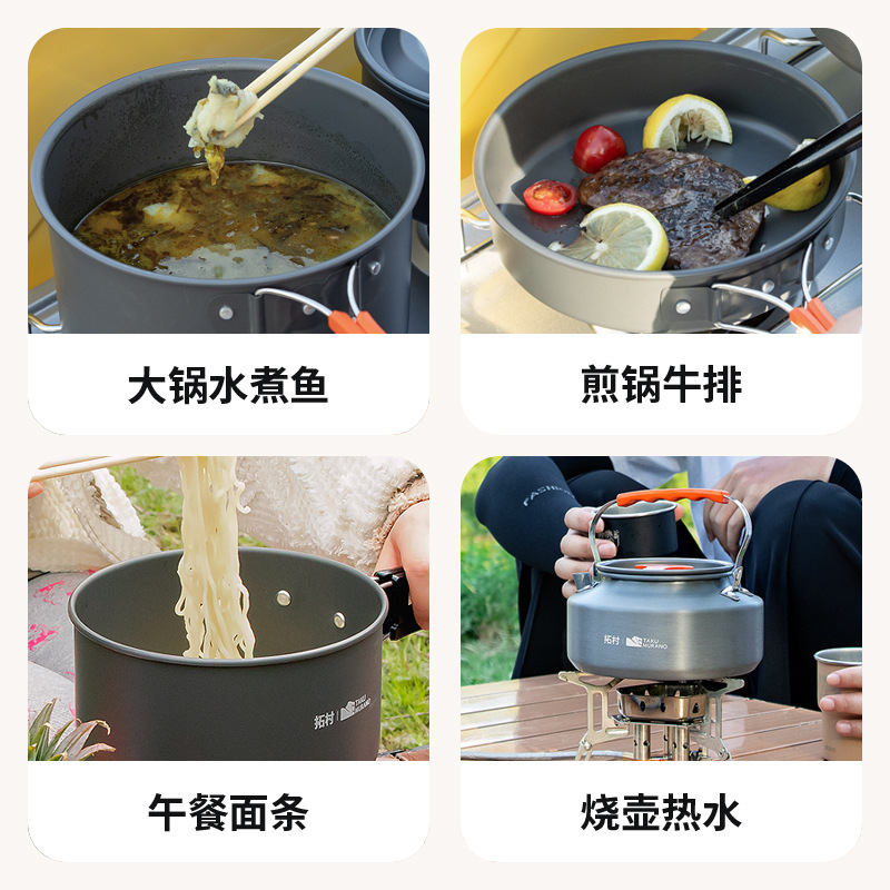 Tuocun outdoor pot folding portable aluminum alloy camping cookware pot combination equipment non-stick pan genuine goods