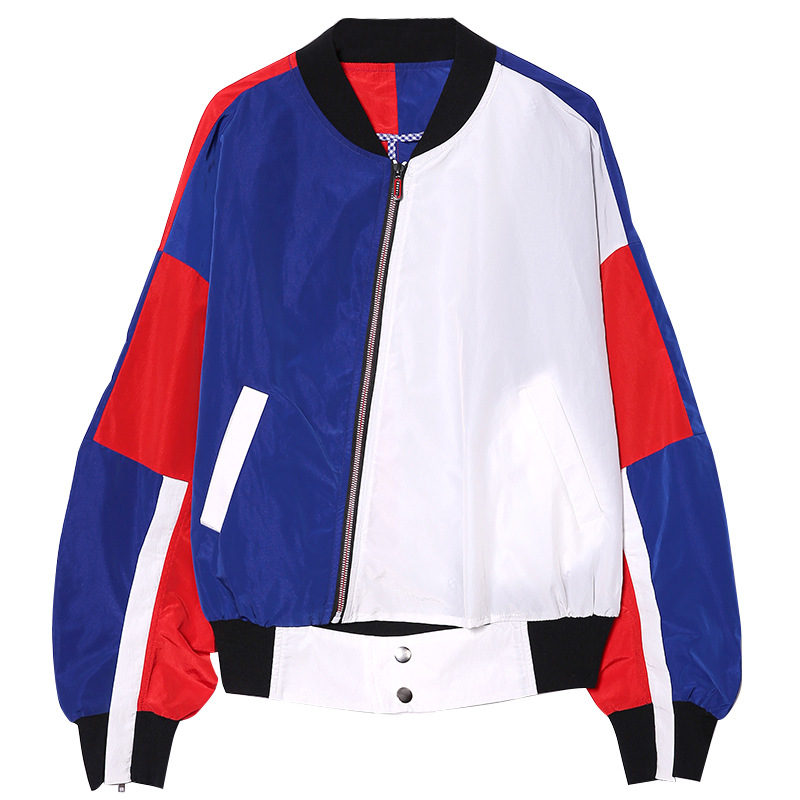 Tuogu designer fashion brand spring long-sleeved baseball uniform slimming color matching zipper jacket jacket printed top for women